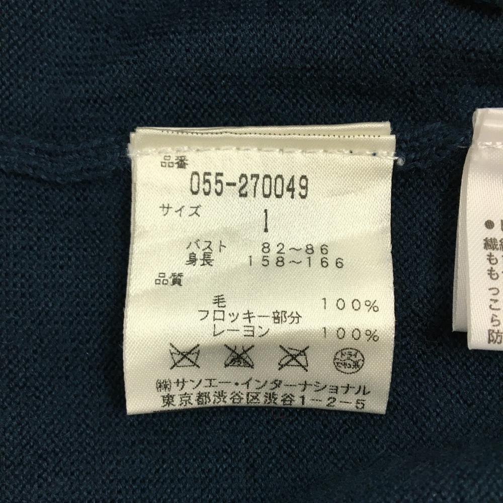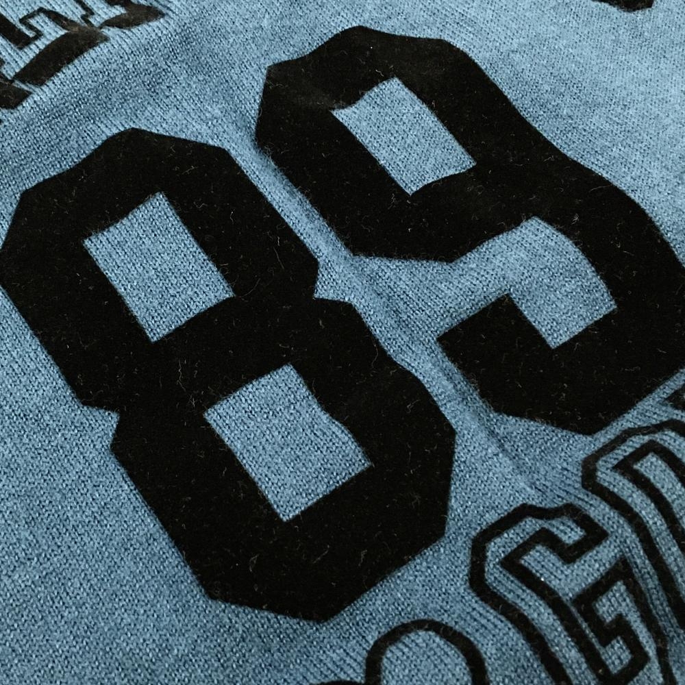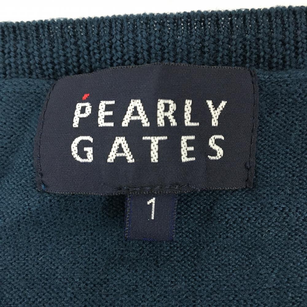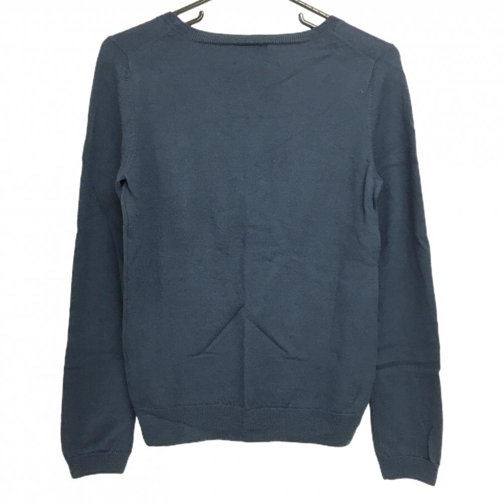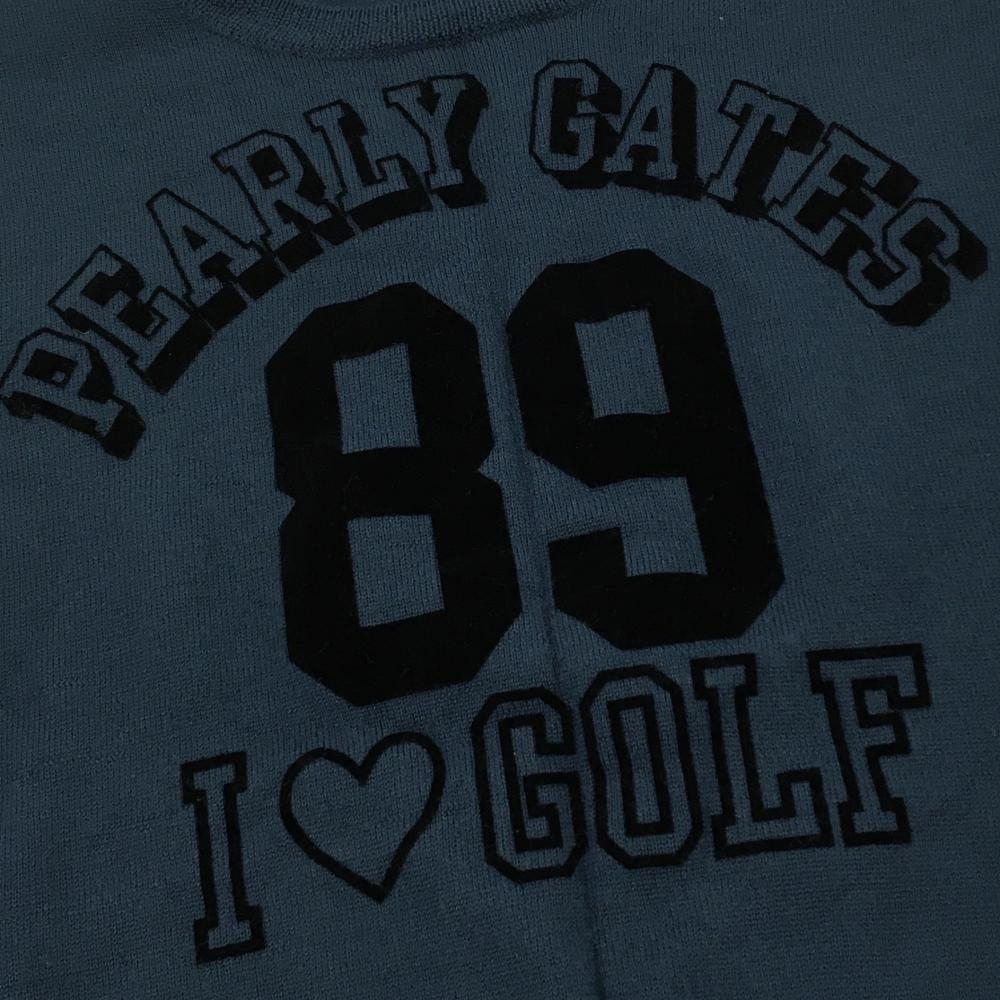 【美品】パーリーゲイツ セーター ダスティブルー系×黒 ニット ウール100% 薄手 レディース 1(M) ゴルフウェア PEARLY GATES