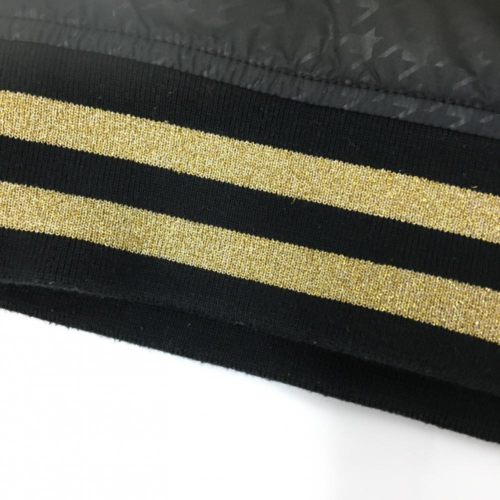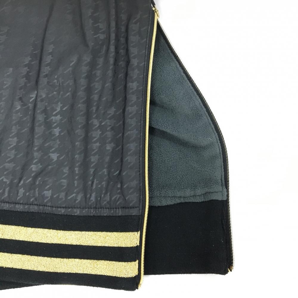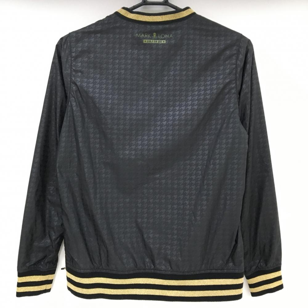 【美品】マークアンドロナ スニード 黒×ゴールド 千鳥格子地模様 裏起毛 ブルゾン レディース S ゴルフウェア MARK&LONA