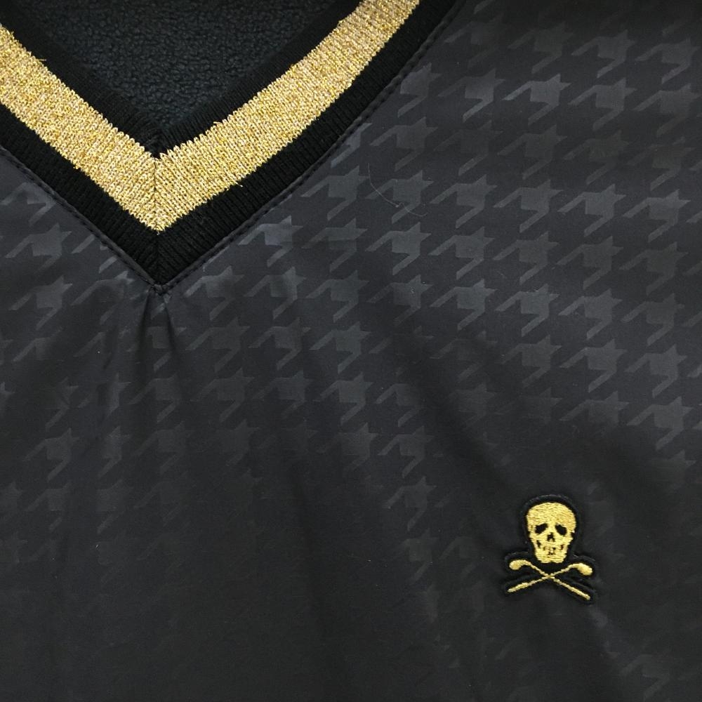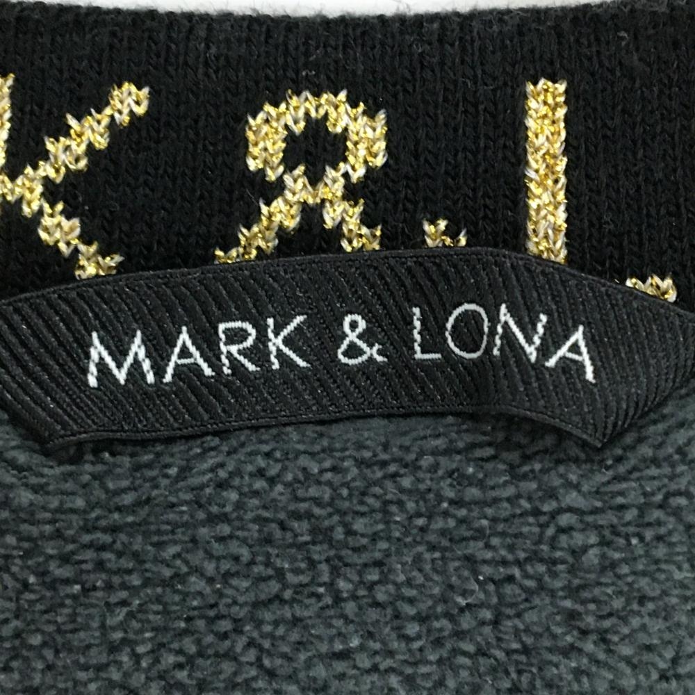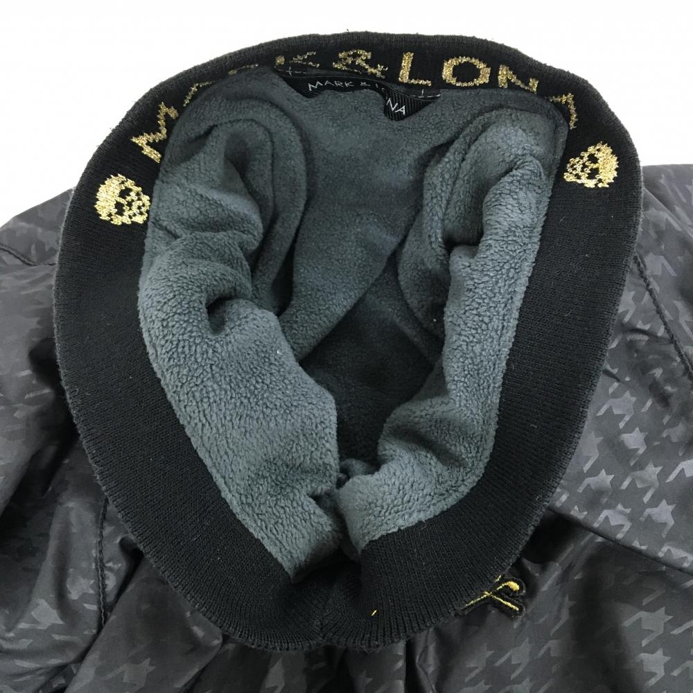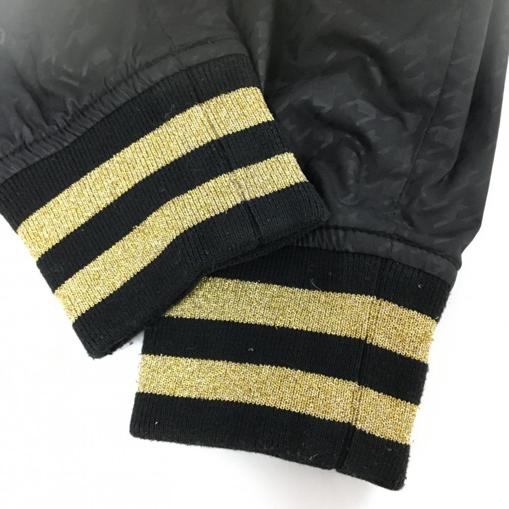 【美品】マークアンドロナ スニード 黒×ゴールド 千鳥格子地模様 裏起毛 ブルゾン レディース S ゴルフウェア MARK&LONA