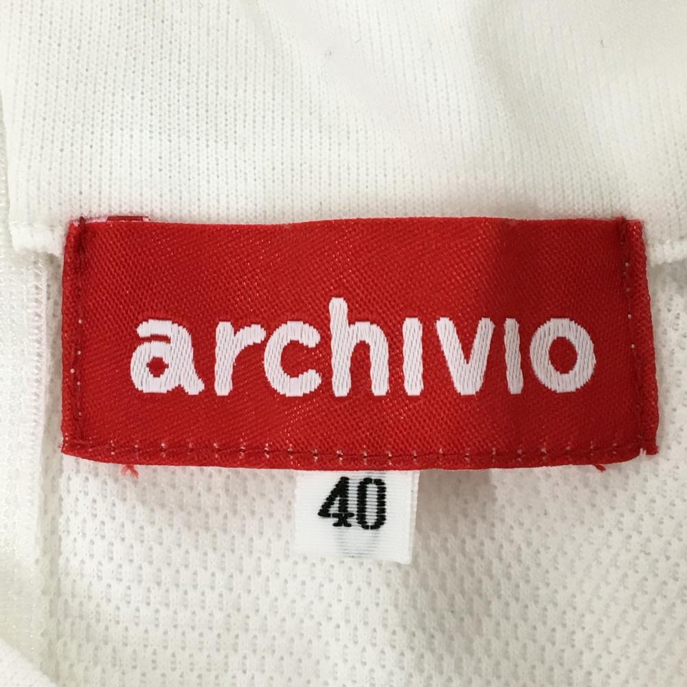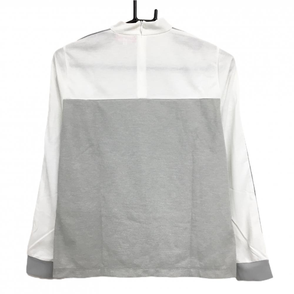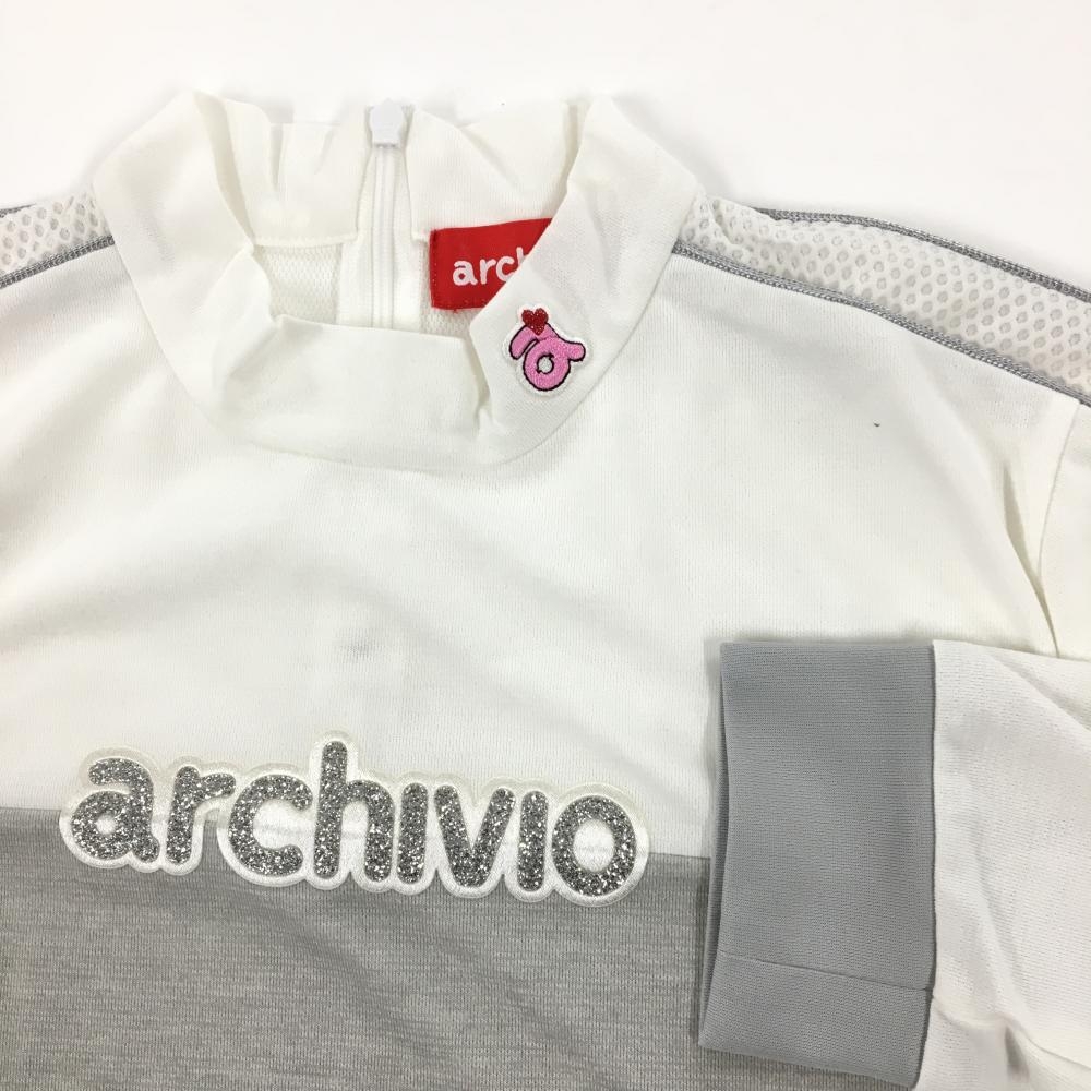 【超美品】アルチビオ 長袖ハイネックシャツ ライトグレー×白 バイカラー 袖一部メッシュ調 レディース 40(L) ゴルフウェア archivio