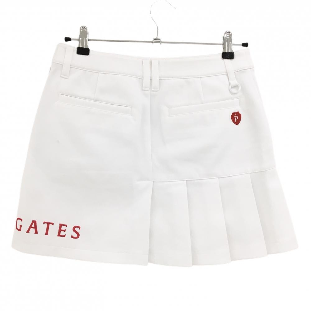 【美品】パーリーゲイツ スカート 白×レッド 一部裾プリーツ 裾ロゴ刺しゅう ストレッチ レディース 1(M) ゴルフウェア PEARLY GATES
