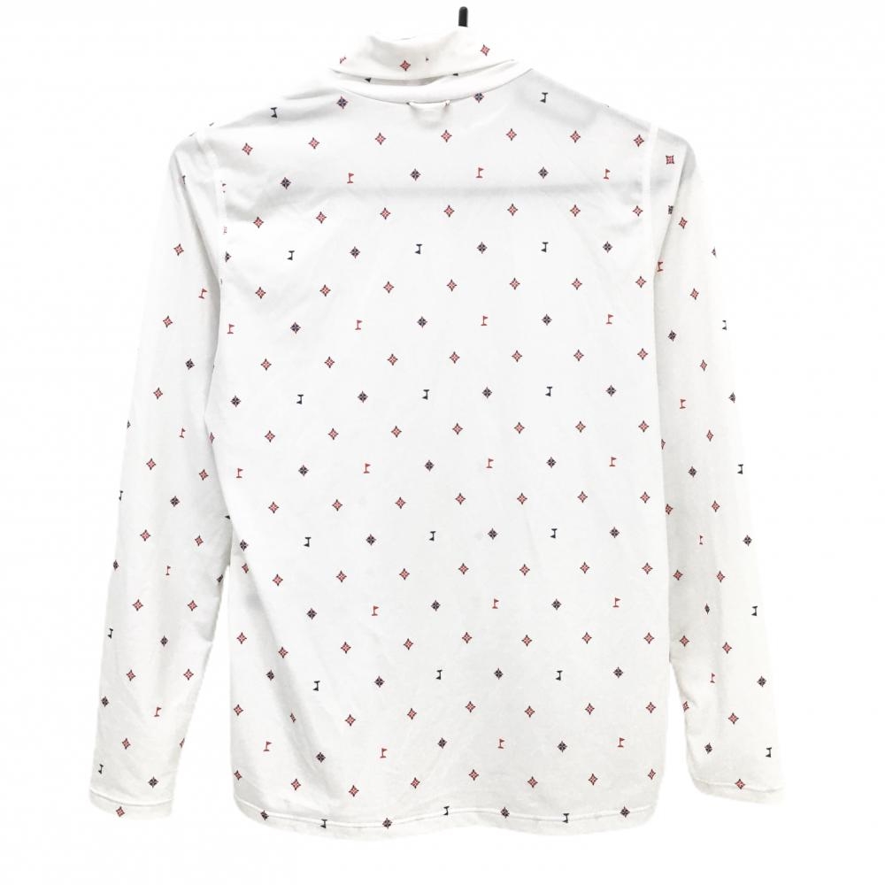 【超美品】フィラゴルフ ハイネックインナーシャツ 白×レッド 総柄 フラッグ レディース L ゴルフウェア FILA GOLF