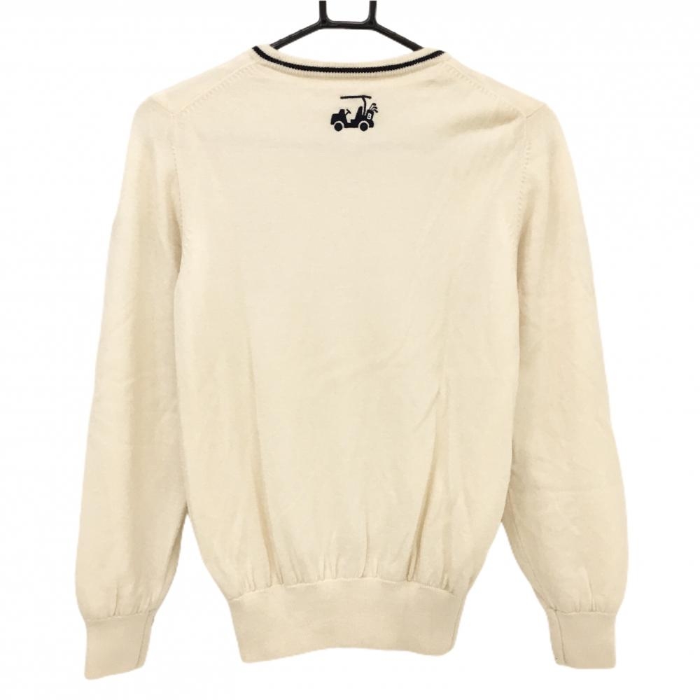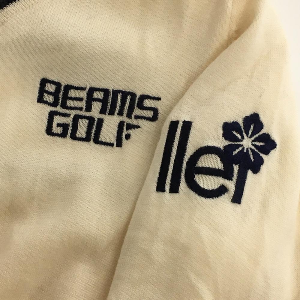 【美品】ビームスゴルフ セーター 白×ネイビー 裏地付 ウール100% Vネック ニット レディース M ゴルフウェア BEAMS GOLF
