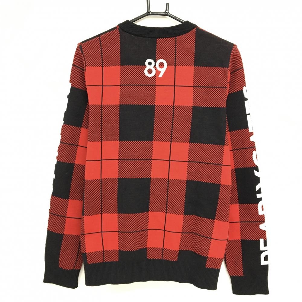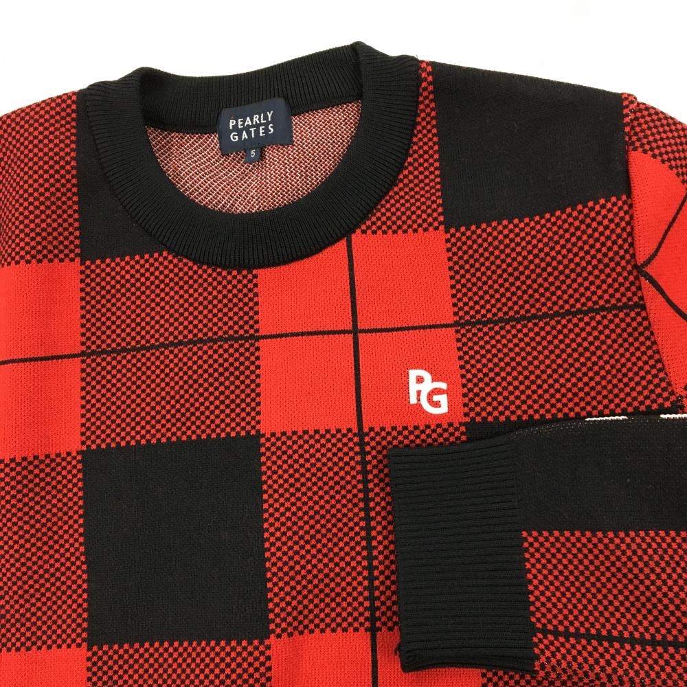 【超美品】パーリーゲイツ セーター レッド×黒 チェック ニット ウール混 メンズ 5(L) ゴルフウェア PEARLY GATES