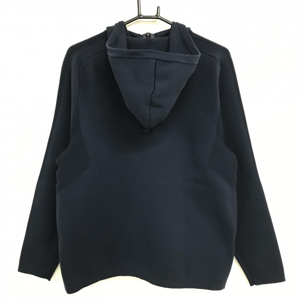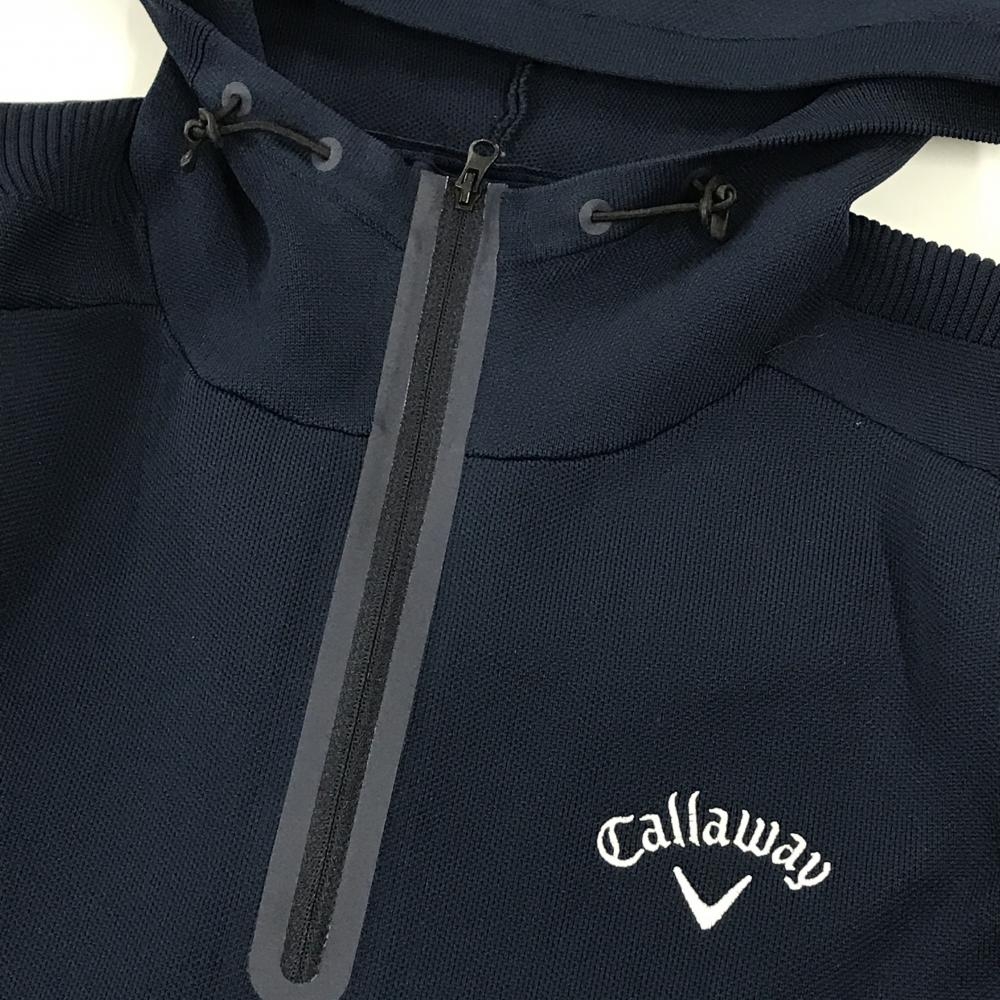 【超美品】キャロウェイ ニットパーカー ネイビー ハーフジップ フード付 一部ボーダー編み メンズ M ゴルフウェア Callaway