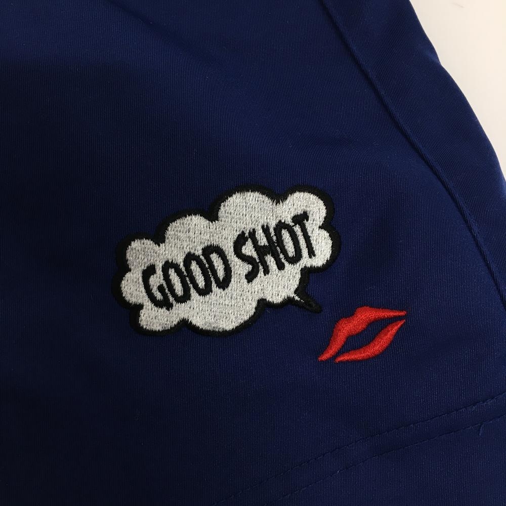 【超美品】キスマークゴルフ スカート ネイビー ベルト部内側レッド ワッペン レディース 7 ゴルフウェア Kissmark Golf