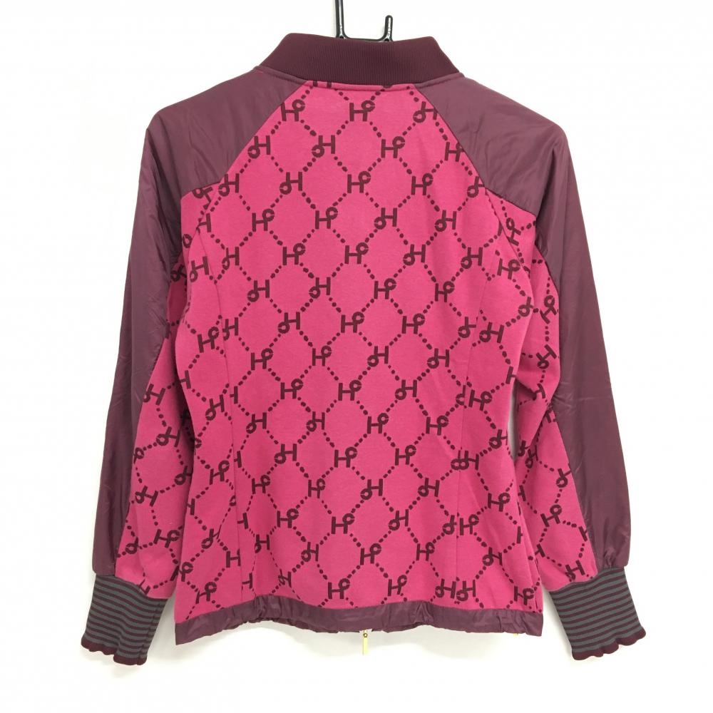 ヒールクリーク ジャケット ピンク×ボルドー ロゴ総柄 一部切替 裏地メッシュ レディース 40(M) ゴルフウェア Heal Creek