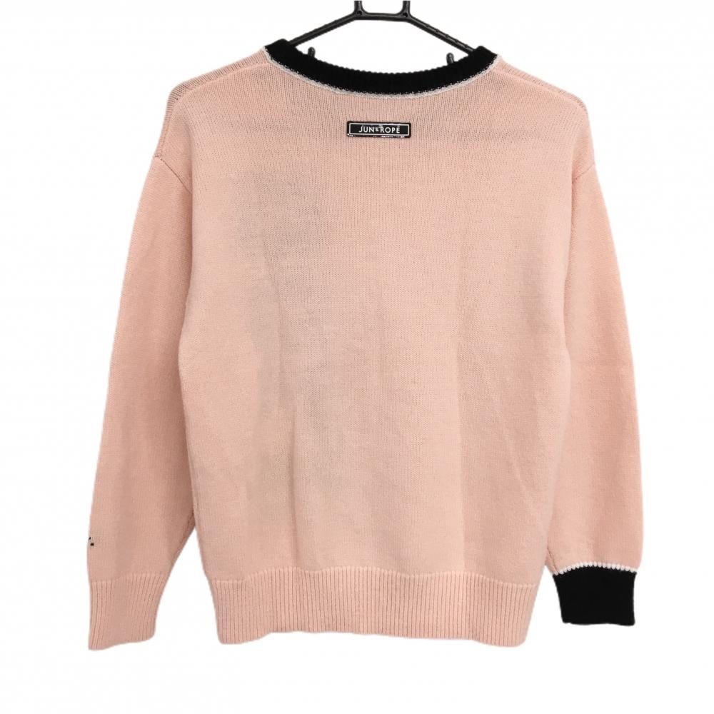 【美品】ジュンアンドロペ セーター ピンク×黒 前面ロゴ ニット レディース ゴルフウェア JUN&ROPE