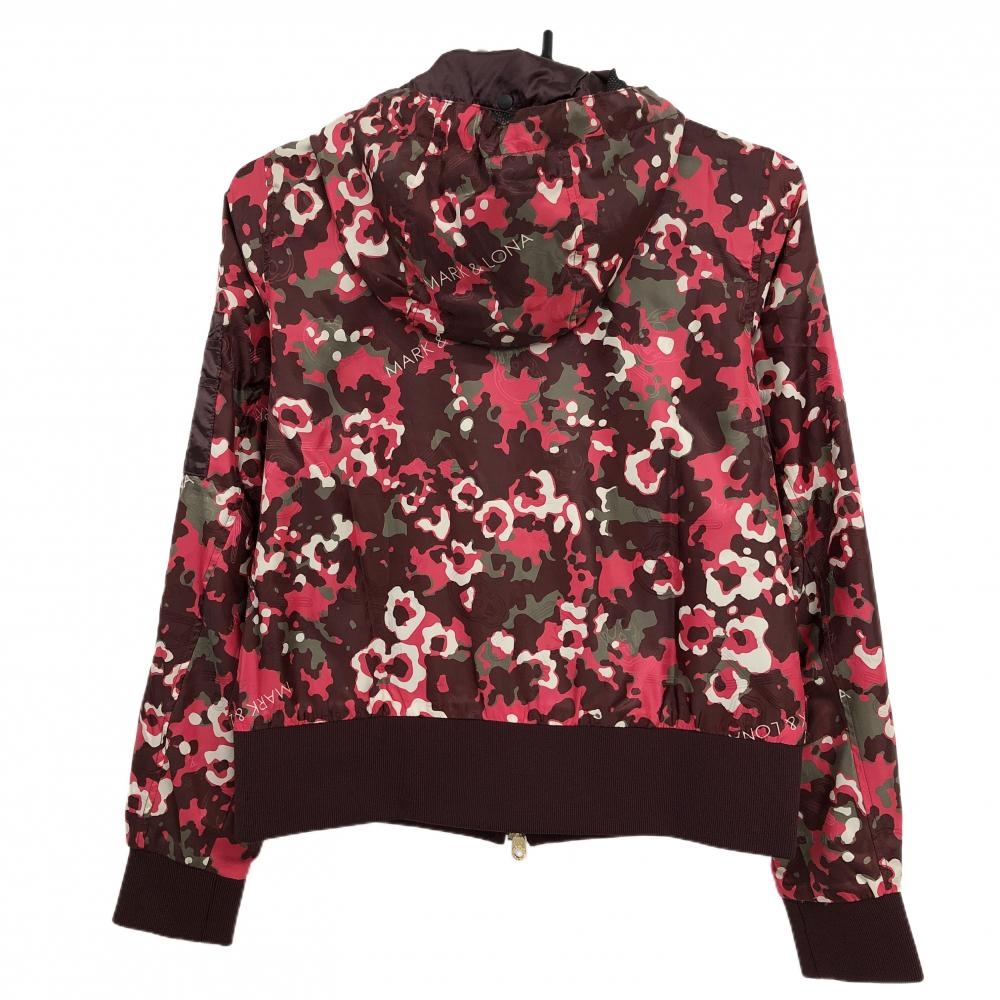 【超美品】マークアンドロナ ジップパーカー ボルドー×レッド カモフラ柄 迷彩 メッシュ裏地 レディース 36(S) ゴルフウェア MARK&LONA