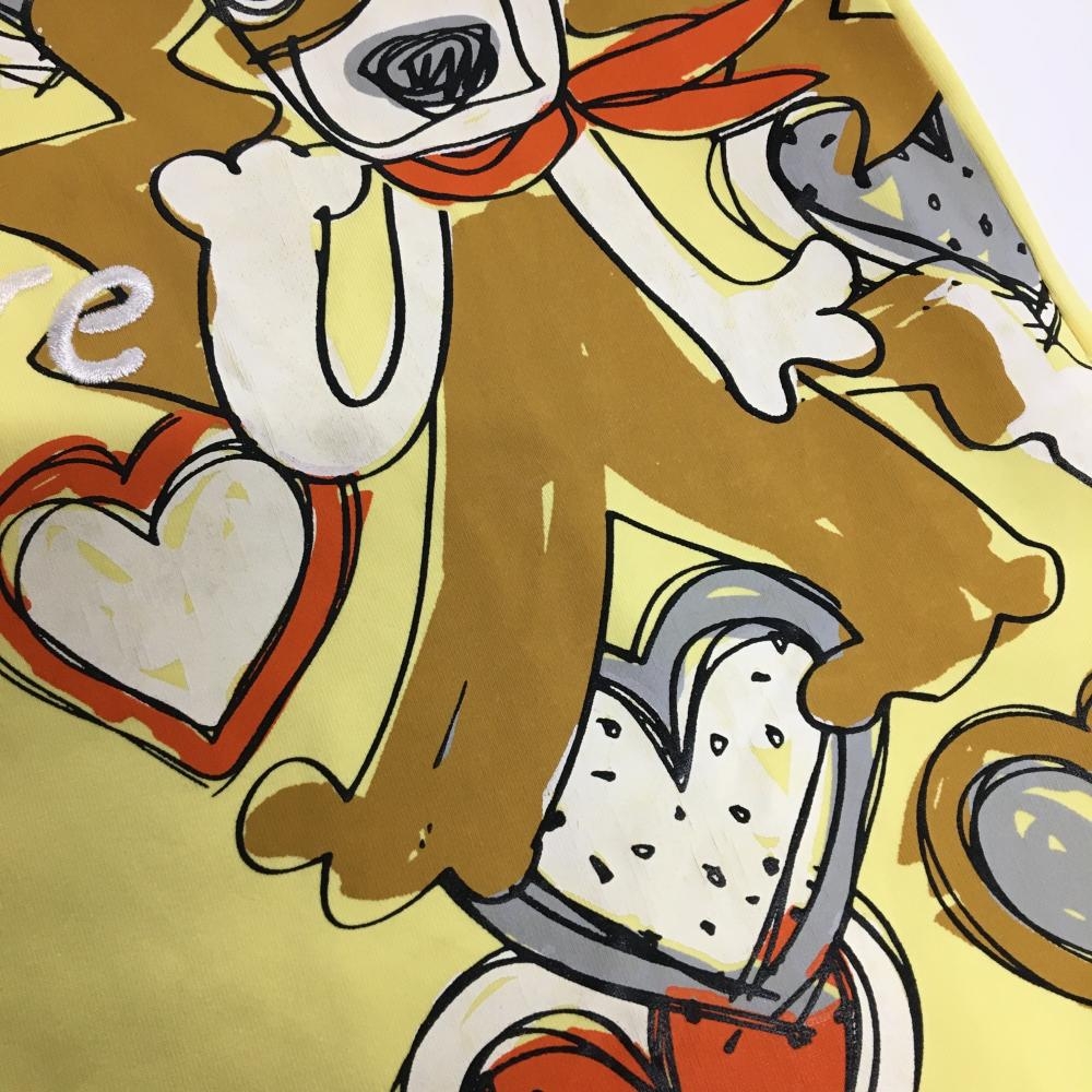MUスポーツ 長袖ハイネックシャツ イエロー 犬プリント ハーフジップ レディース 40(M) ゴルフウェア M・U SPORTS