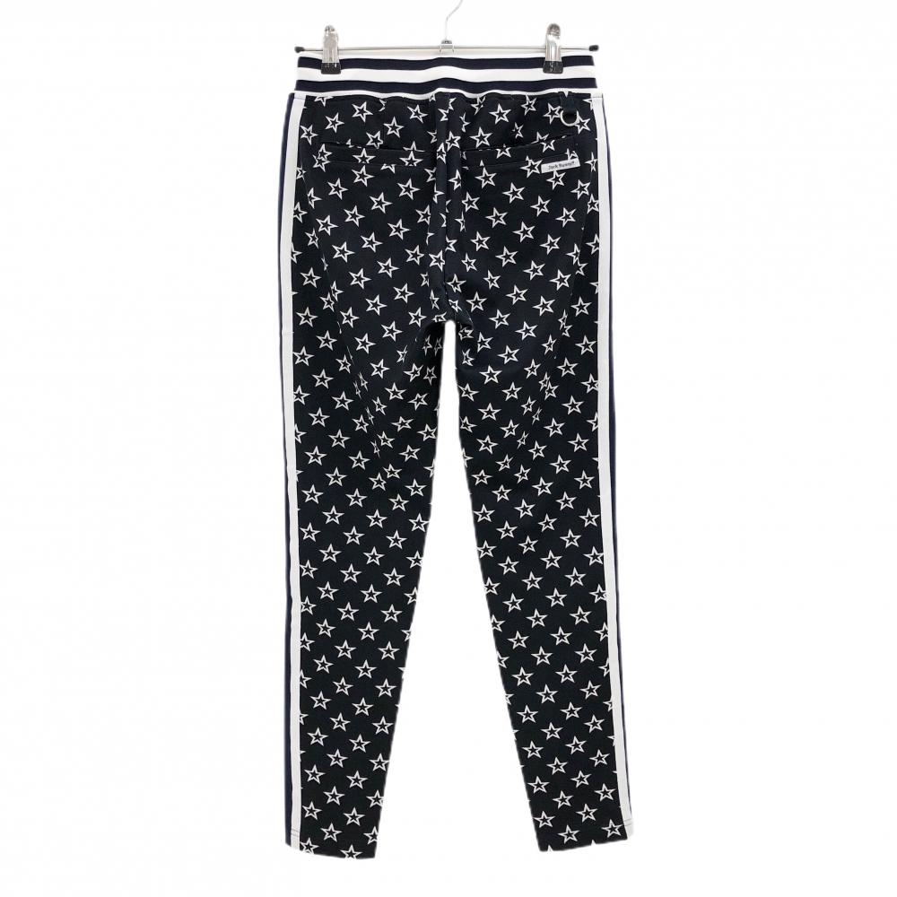【超美品】ジャックバニー パンツ ネイビー×白 星総柄 ストレッチ ウエストゴム レディース 0(S) ゴルフウェア Jack Bunny