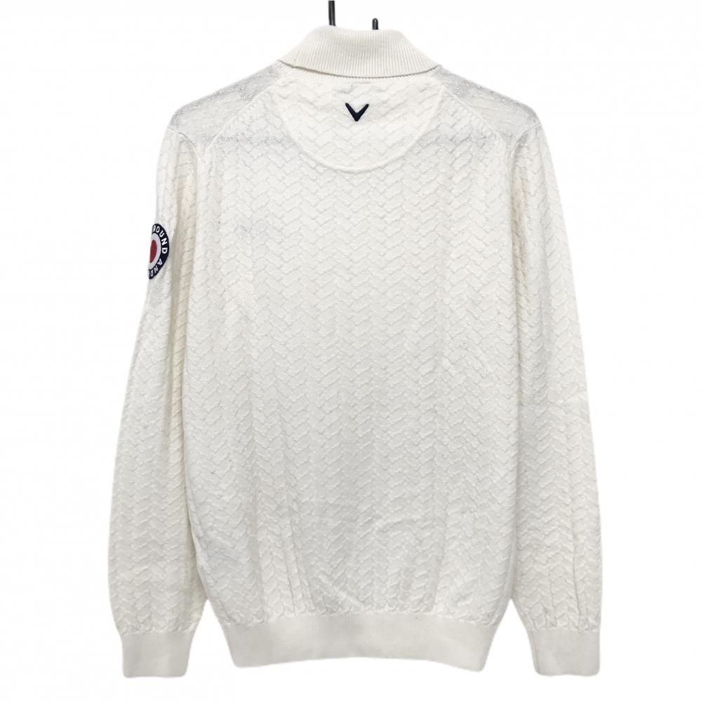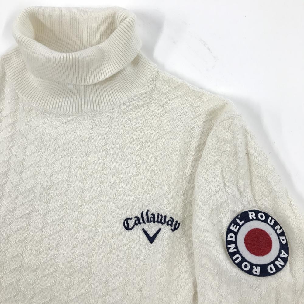 【超美品】キャロウェイ タートルネックセーター 白 総柄編み ニット ウール混 メンズ LL ゴルフウェア Callaway