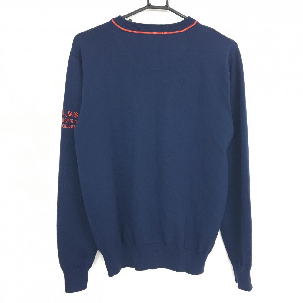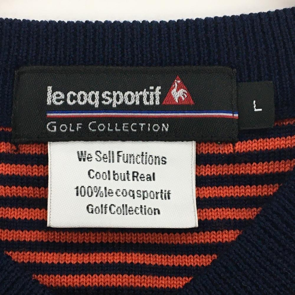 【超美品】ルコック セーター ネイビー×レッド ニット ウール100% Vネック メンズ L ゴルフウェア le coq sportif