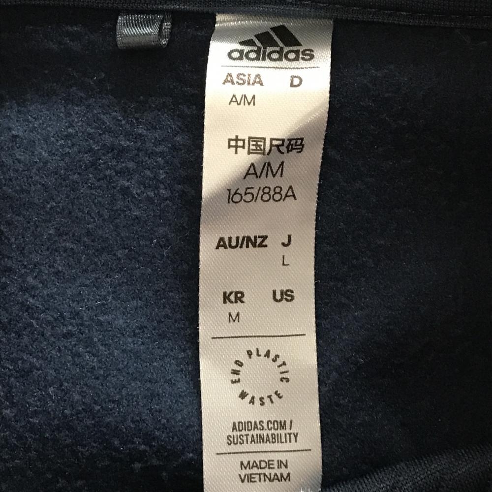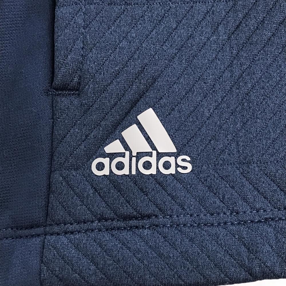 【美品】アディダス ジャケット ネイビー 前身頃凹凸生地 サムホール付 裏起毛 レディース L ゴルフウェア adidas