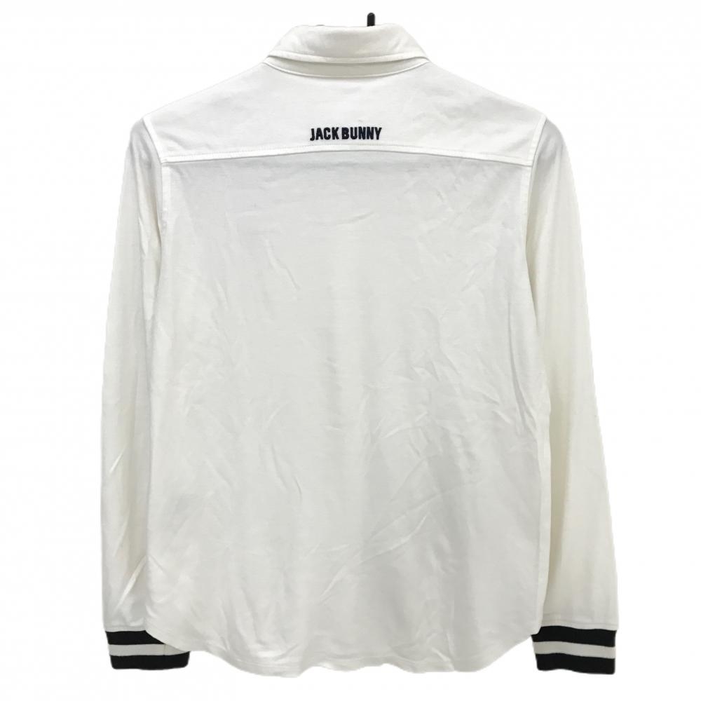 ジャックバニー 長袖シャツ 白×黒 微起毛 ラビット刺しゅう 袖口ボーダー ボタンダウン レディース 1(M) ゴルフウェア Jack Bunny