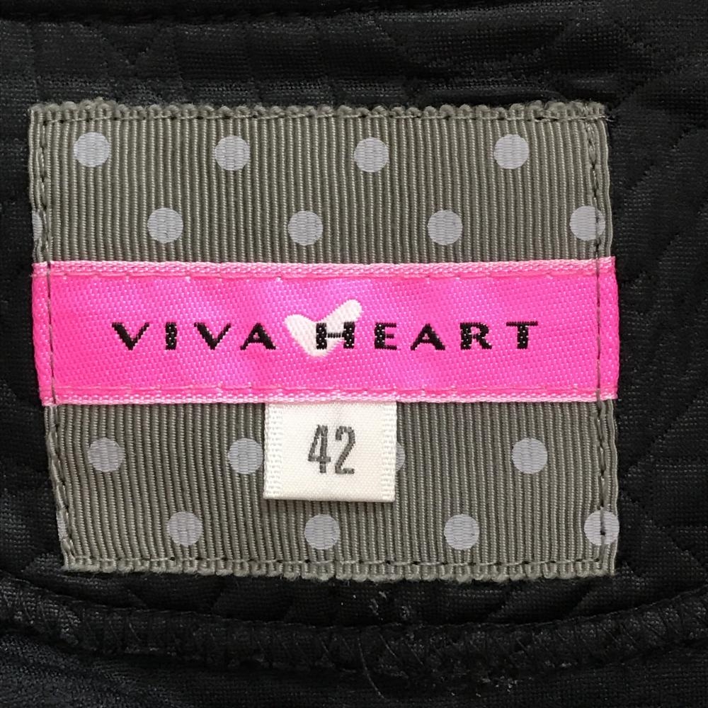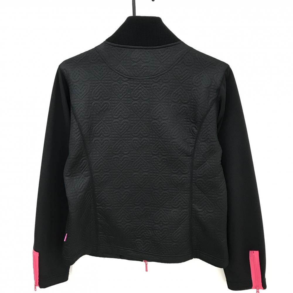 【超美品】ビバハート ジャケット 黒×ピンク 凸凹地模様 ハート 胸元ロゴ アクリル100% レディース 42(L) ゴルフウェア VIVA HEART