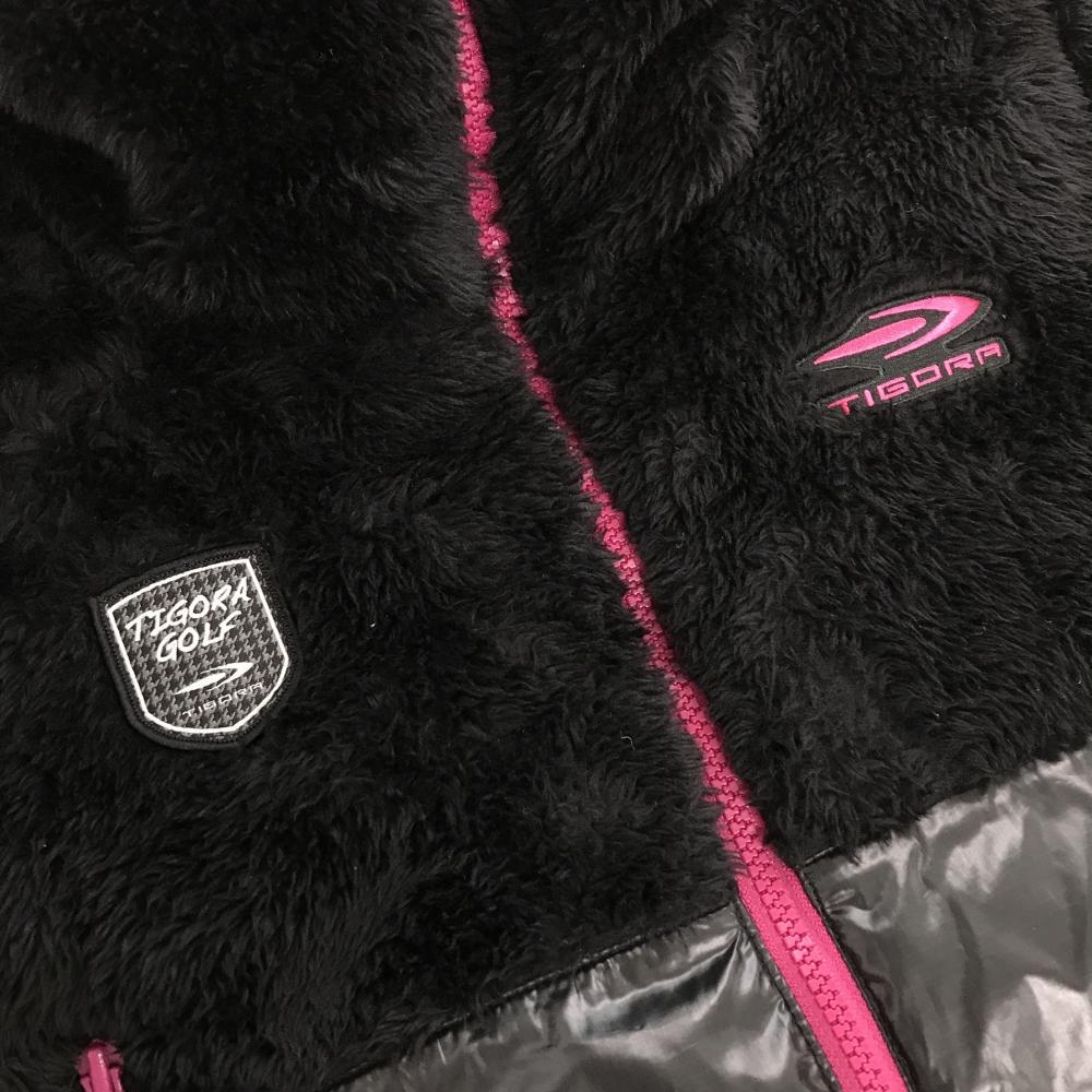 【超美品】ティゴラ ダウンジャケット 黒×ピンク 上部ボア 刺しゅうワッペン レディース M ゴルフウェア TIGORA