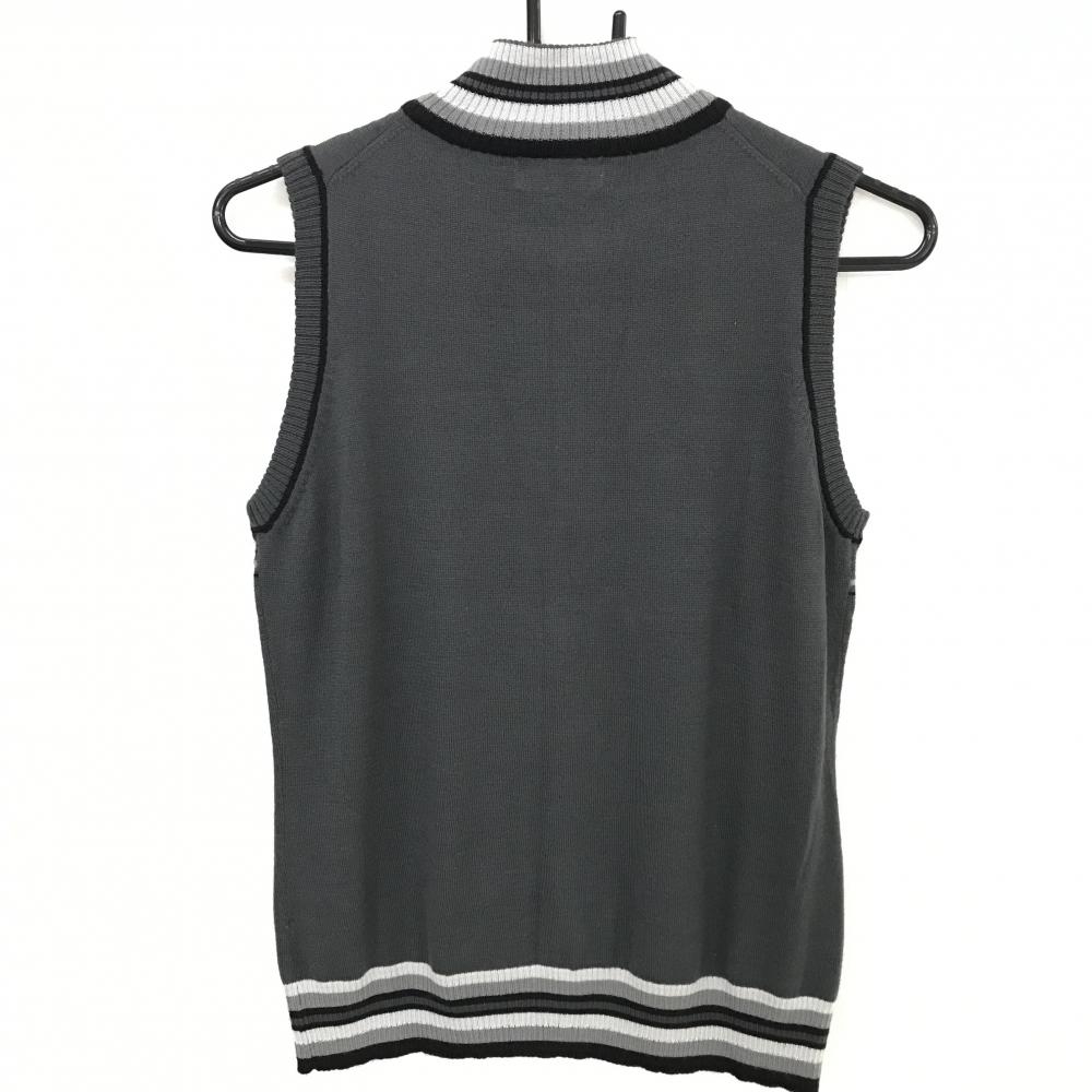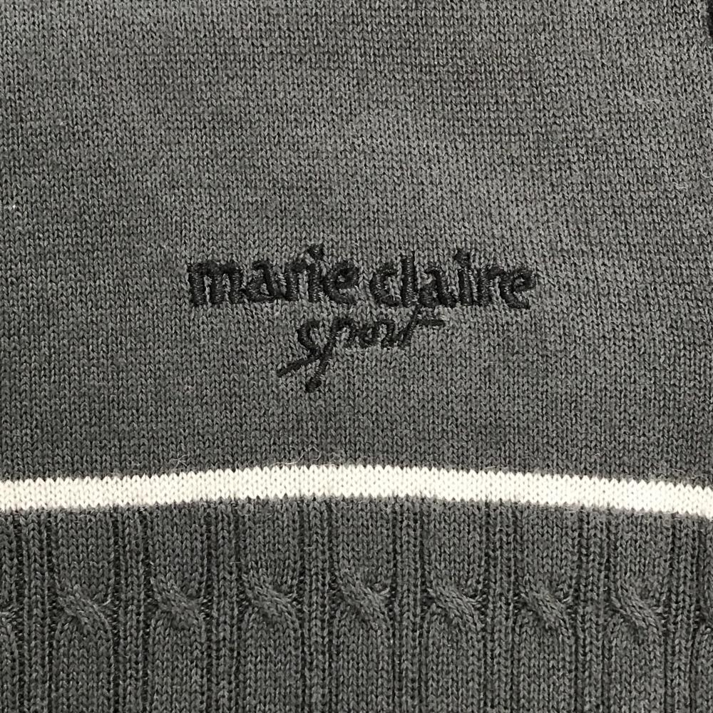【超美品】マリクレールスポール ニットベスト グレー×ライトグレー フルジップ レディース M ゴルフウェア marie claire