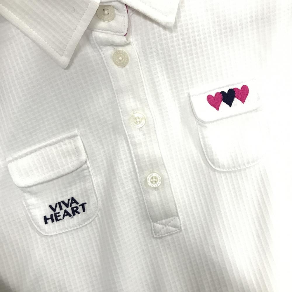 ビバハート 長袖ポロシャツ 白 襟裏・袖口裏ピンク ロゴ刺しゅう 胸ポケット レディース 40(M) ゴルフウェア VIVA HEART