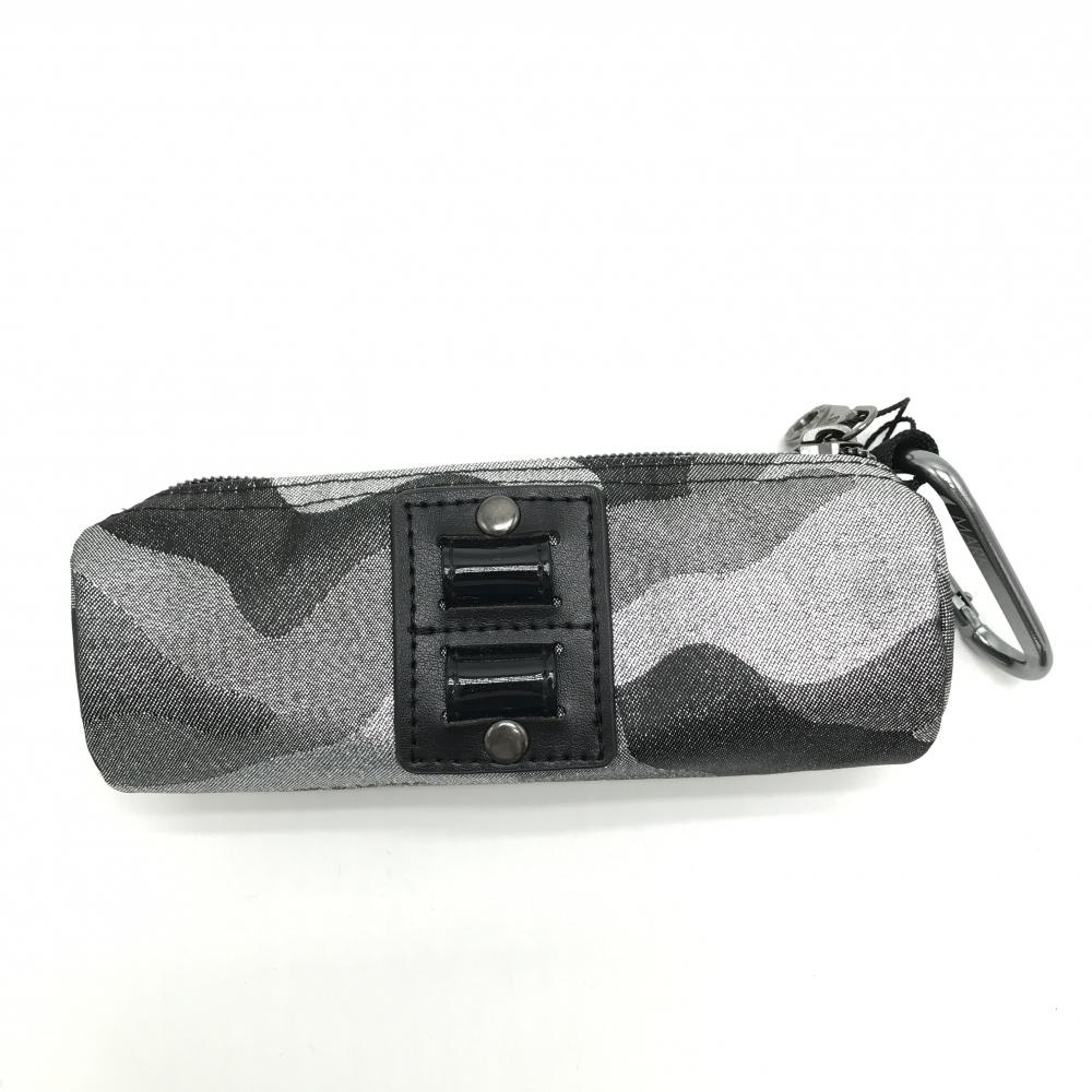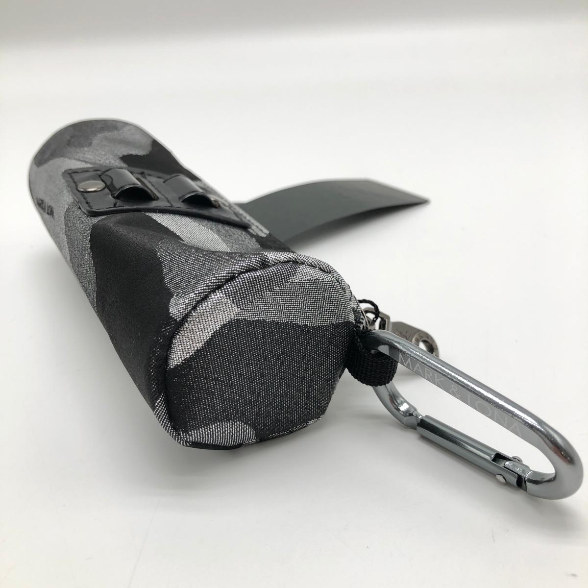 【新品】マークアンドロナ ボールポーチ グレー系×黒 カモフラ 迷彩 光沢 カラビナ付き ONEゴルフ MARK&LONA