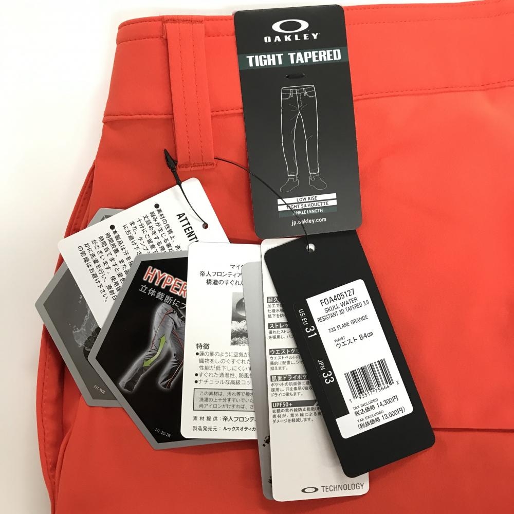 【新品】オークリー パンツ オレンジ ロゴ刺しゅう 立体裁断 ストレッチ メンズ 33 ゴルフウェア 2023年モデル Oakley