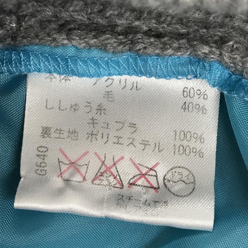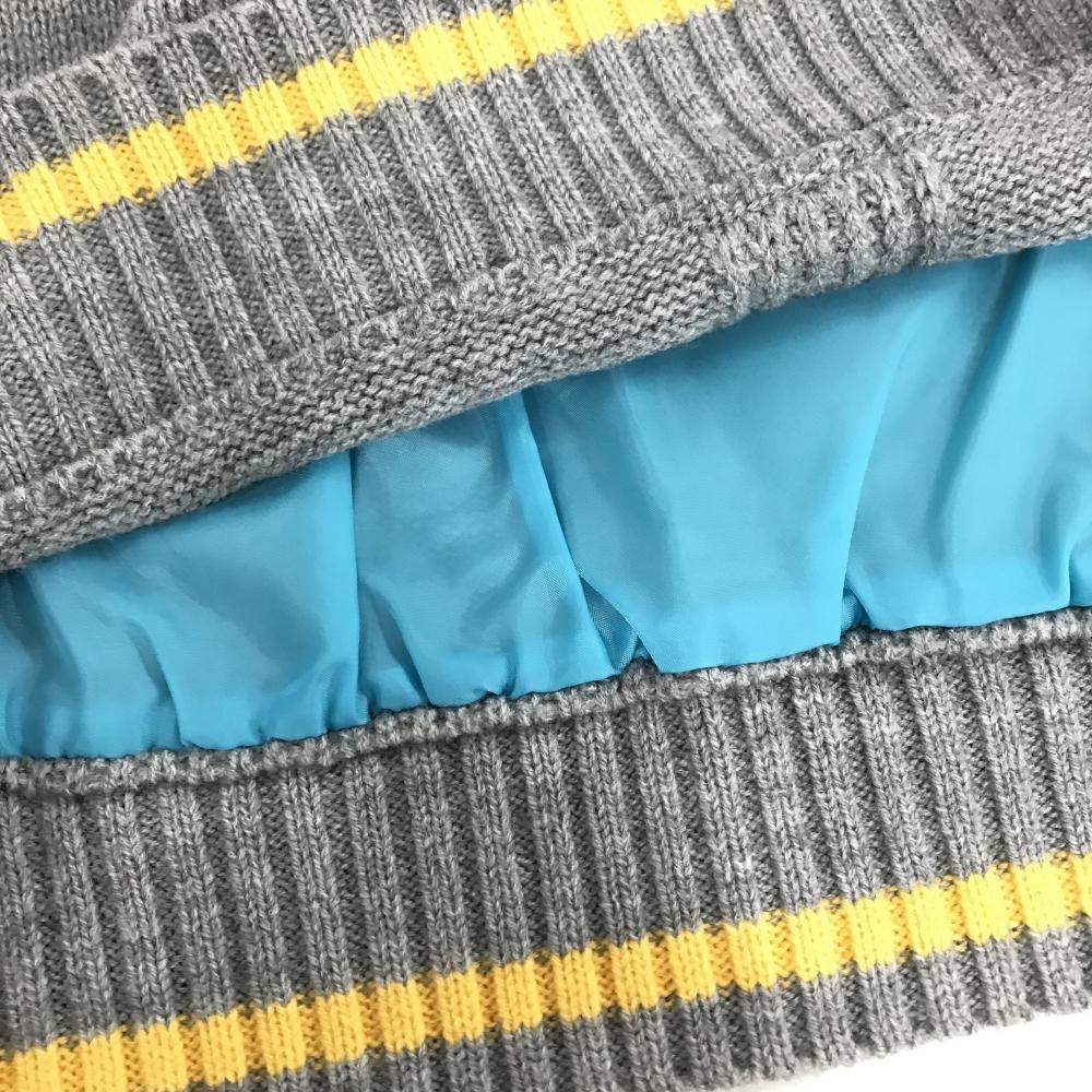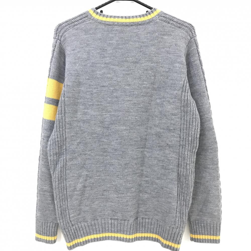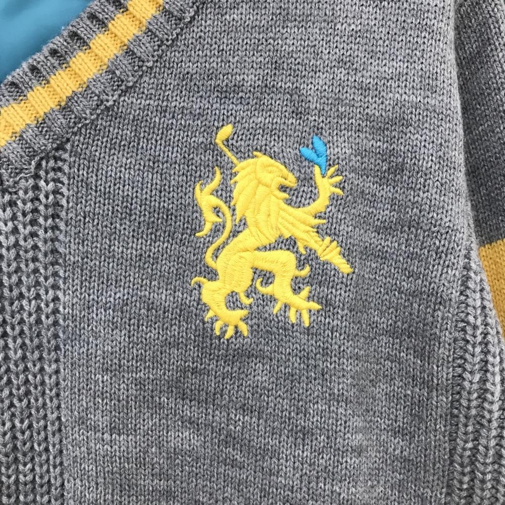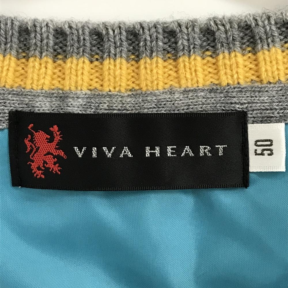 【美品】ビバハート セーター グレー×イエロー Vネック ロゴ刺しゅう 背面裏地付き ウール混 メンズ 50(L) ゴルフウェア VIVA HEART