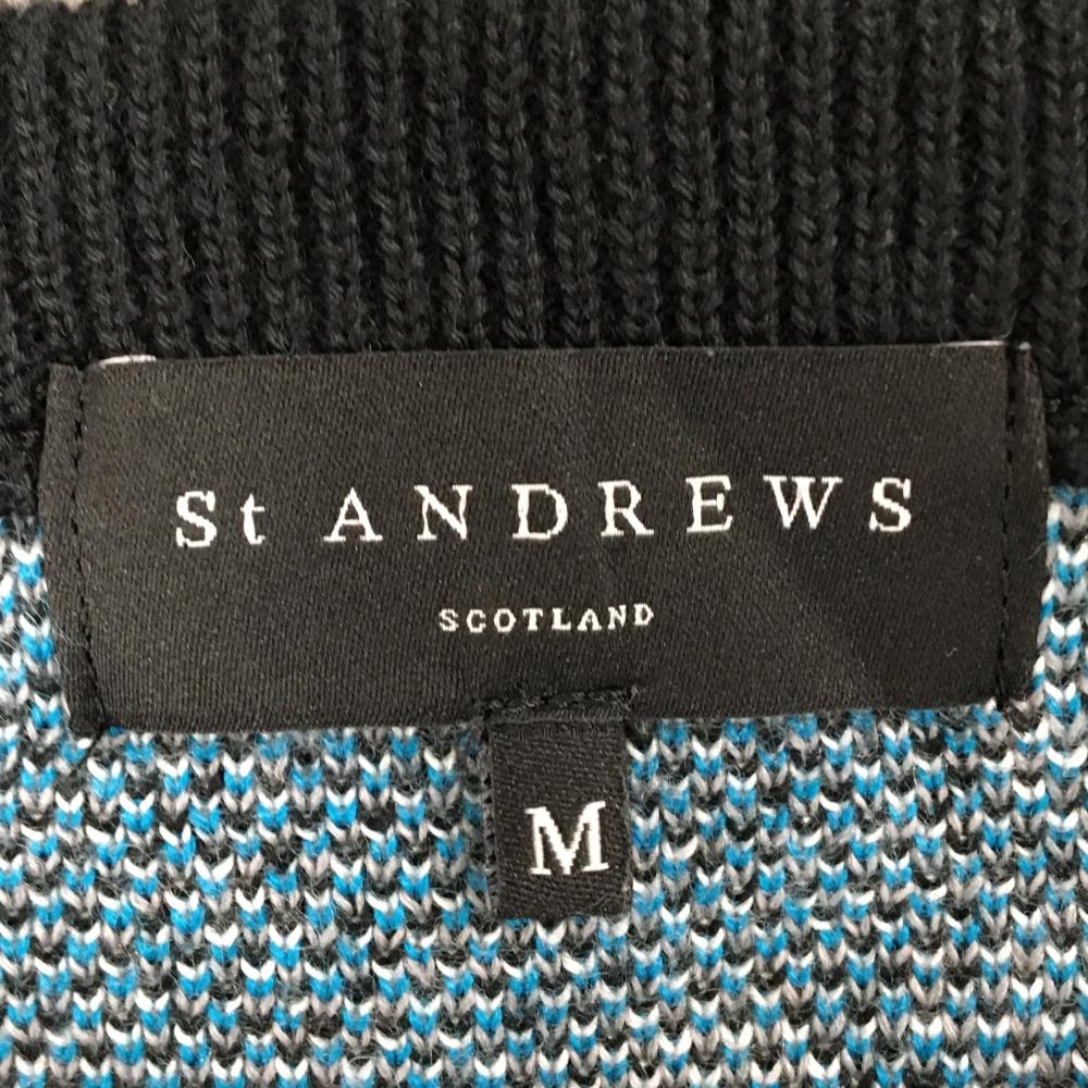【美品】セントアンドリュース セーター 黒×ブルー 千鳥柄 ロゴ刺しゅう ウール混 ニット レディース M ゴルフウェア St ANDREWS