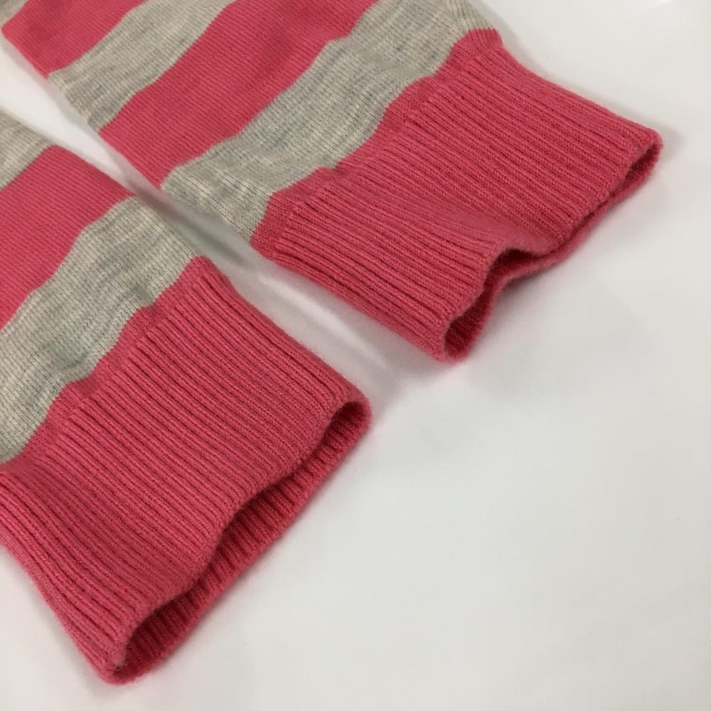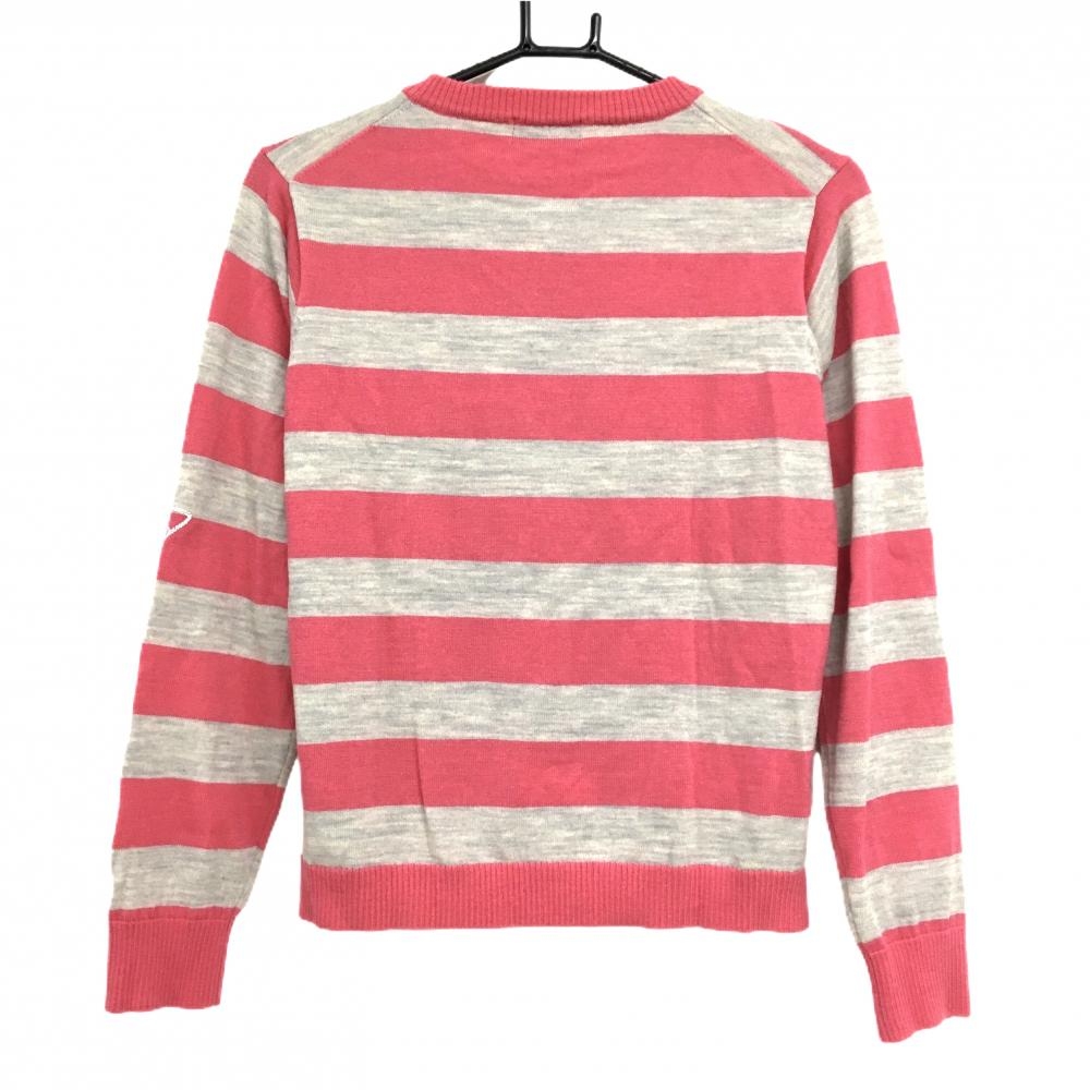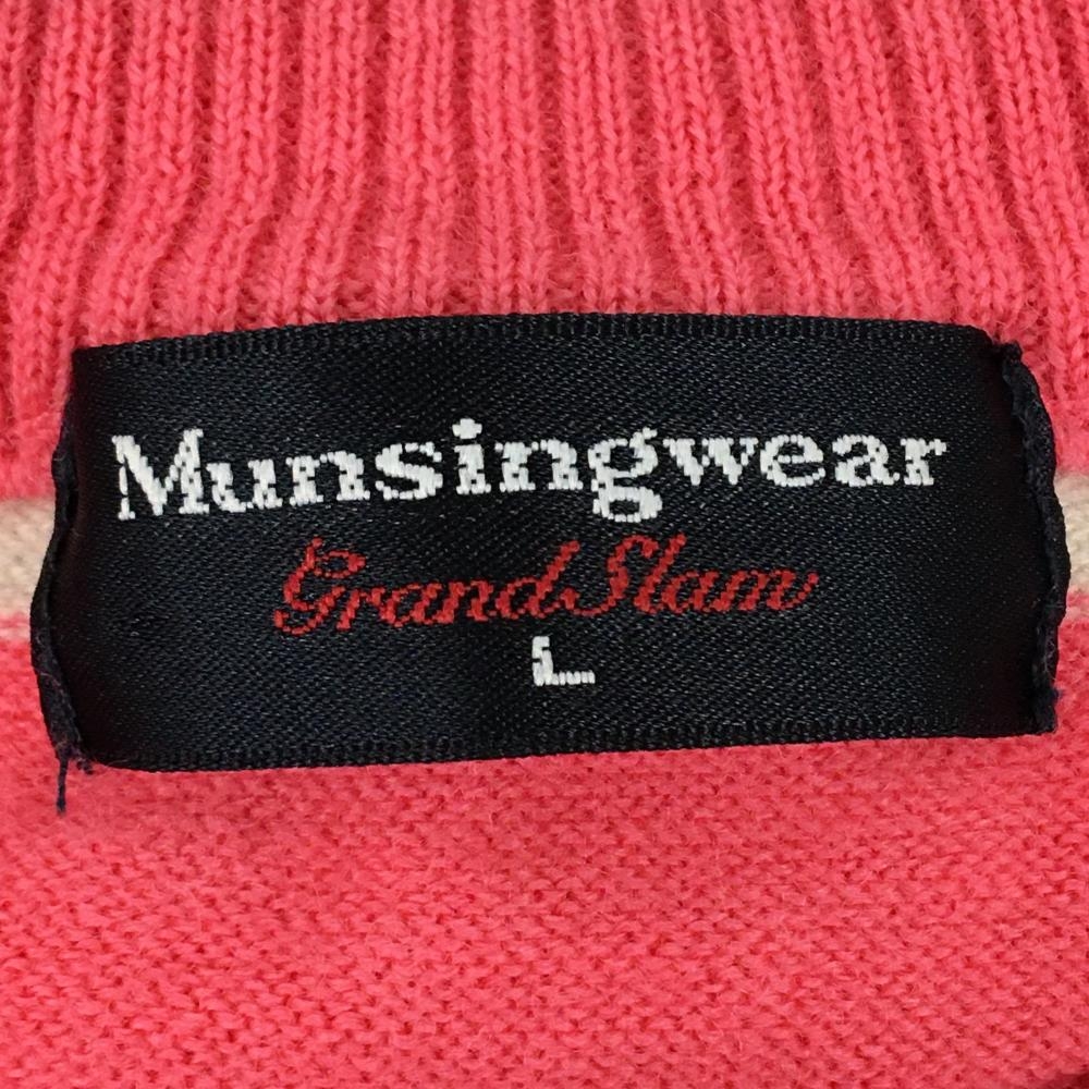 【美品】マンシングウェア セーター ピンク×ライトグレー ボーダー柄 ロゴ白 ウール100% レディース L ゴルフウェア Munsingwear