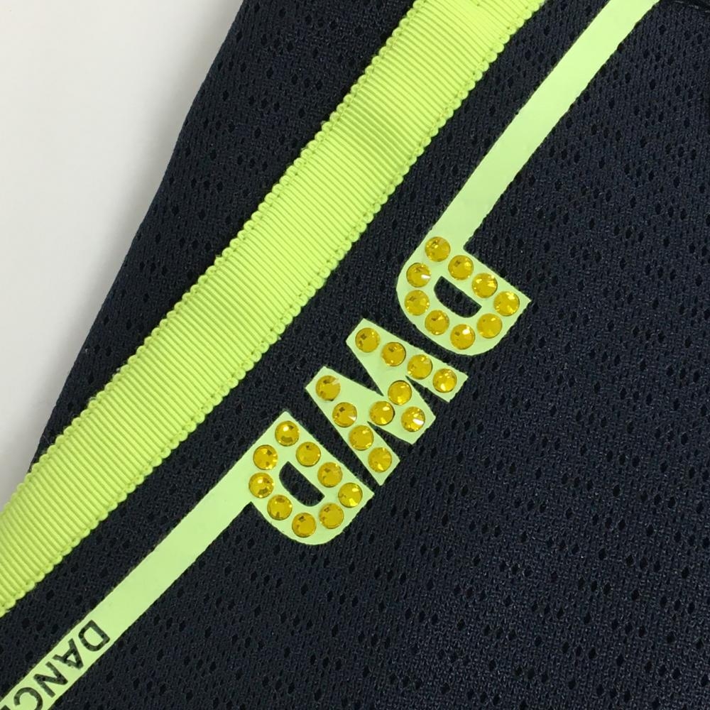 【超美品】ダンスウィズドラゴン スカート ネイビー×イエロー 織生地 後裾ニット レディース 2(M) ゴルフウェア Dance With Dragon
