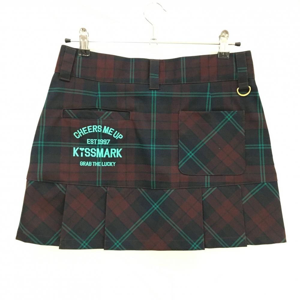 【超美品】キスマーク スカート ボルドー×グリーン チェック 裾プリーツ レディース 9 ゴルフウェア kissmark