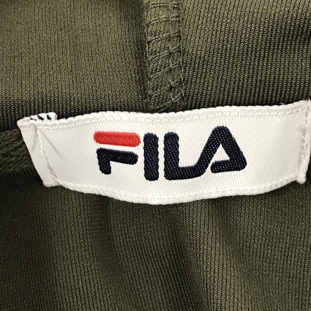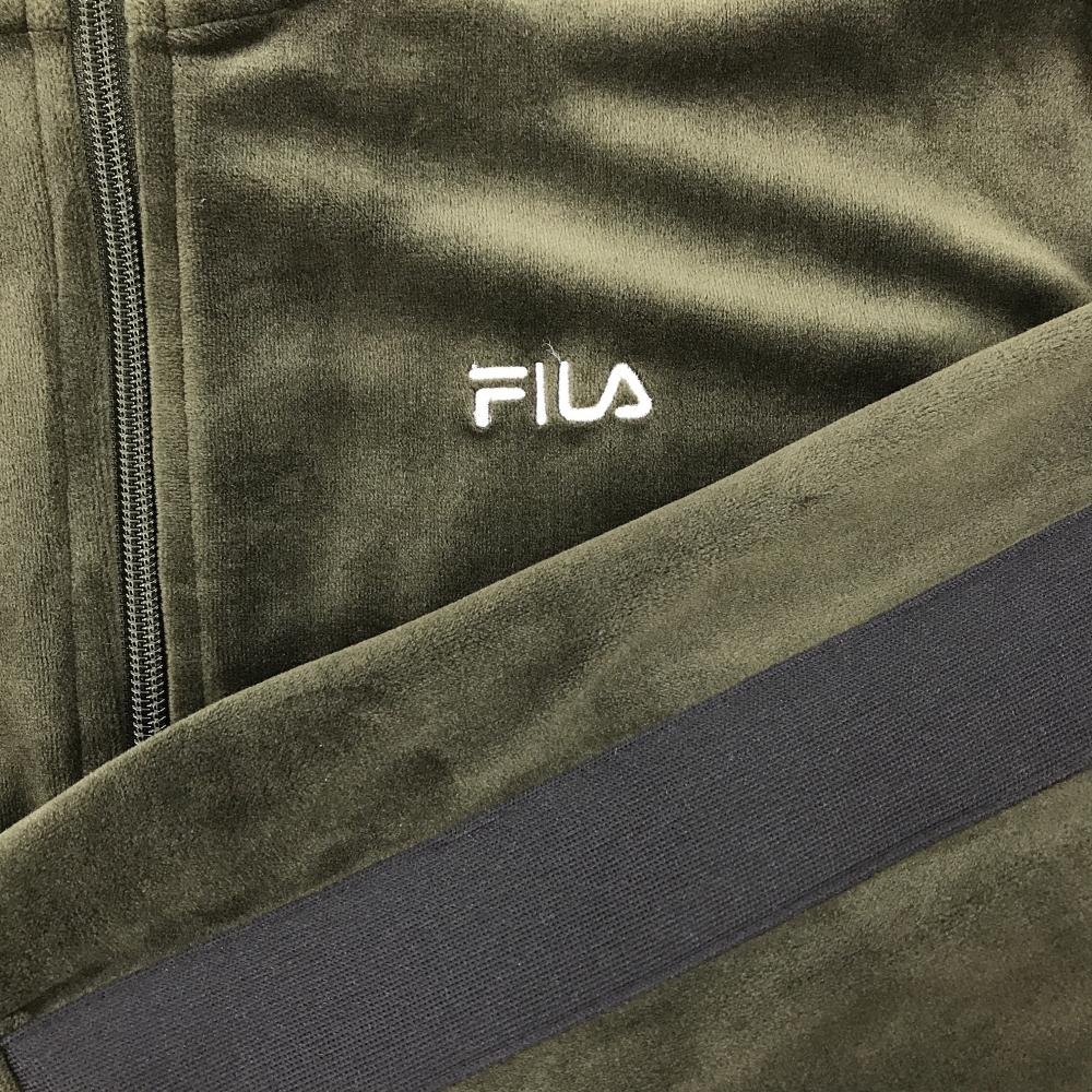 【美品】フィラ ジップパーカー カーキ×黒 表起毛 袖ライン ブルゾン レディース L ゴルフウェア FILA GOLF