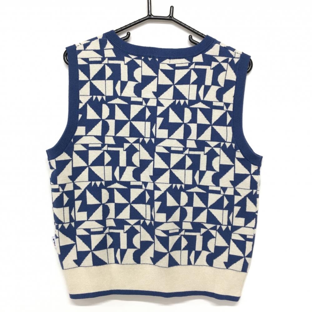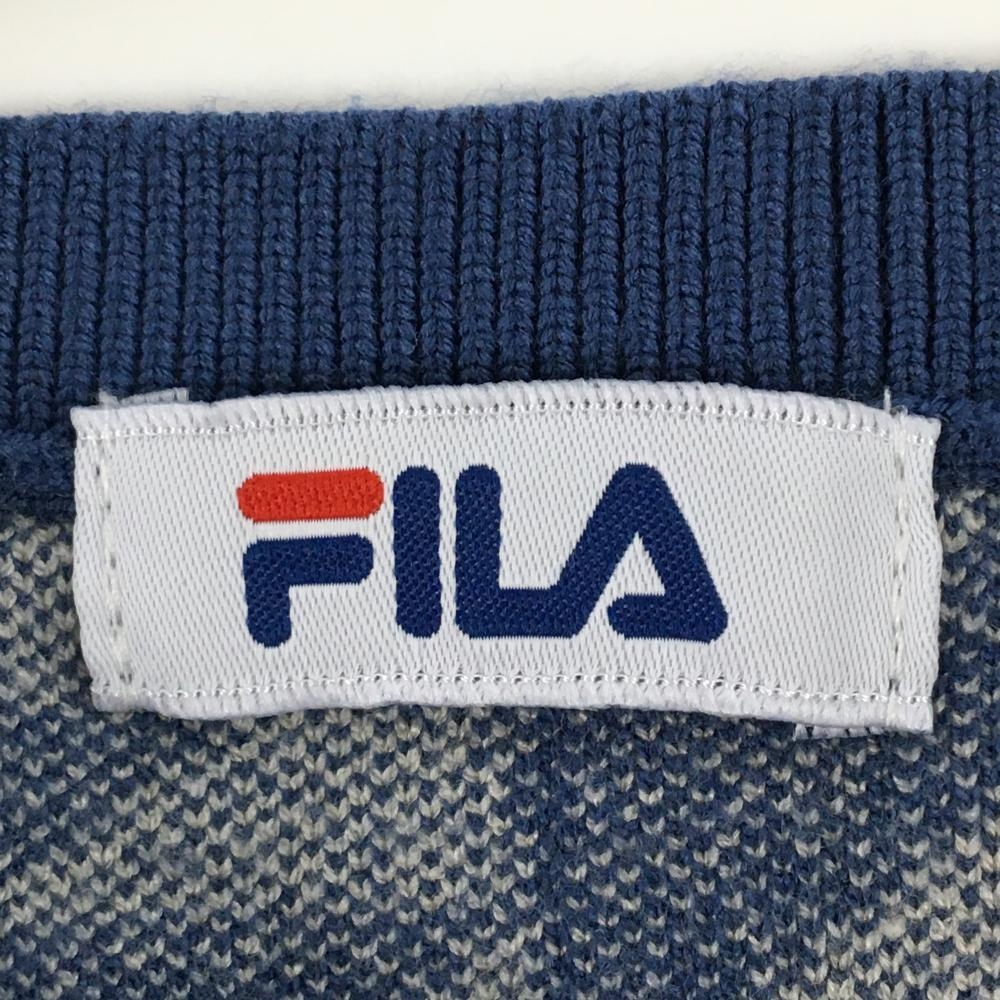 【超美品】フィラ ニットベスト ブルー×ライトベージュ 総柄 Vネック レディース M ゴルフウェア FILA GOLF