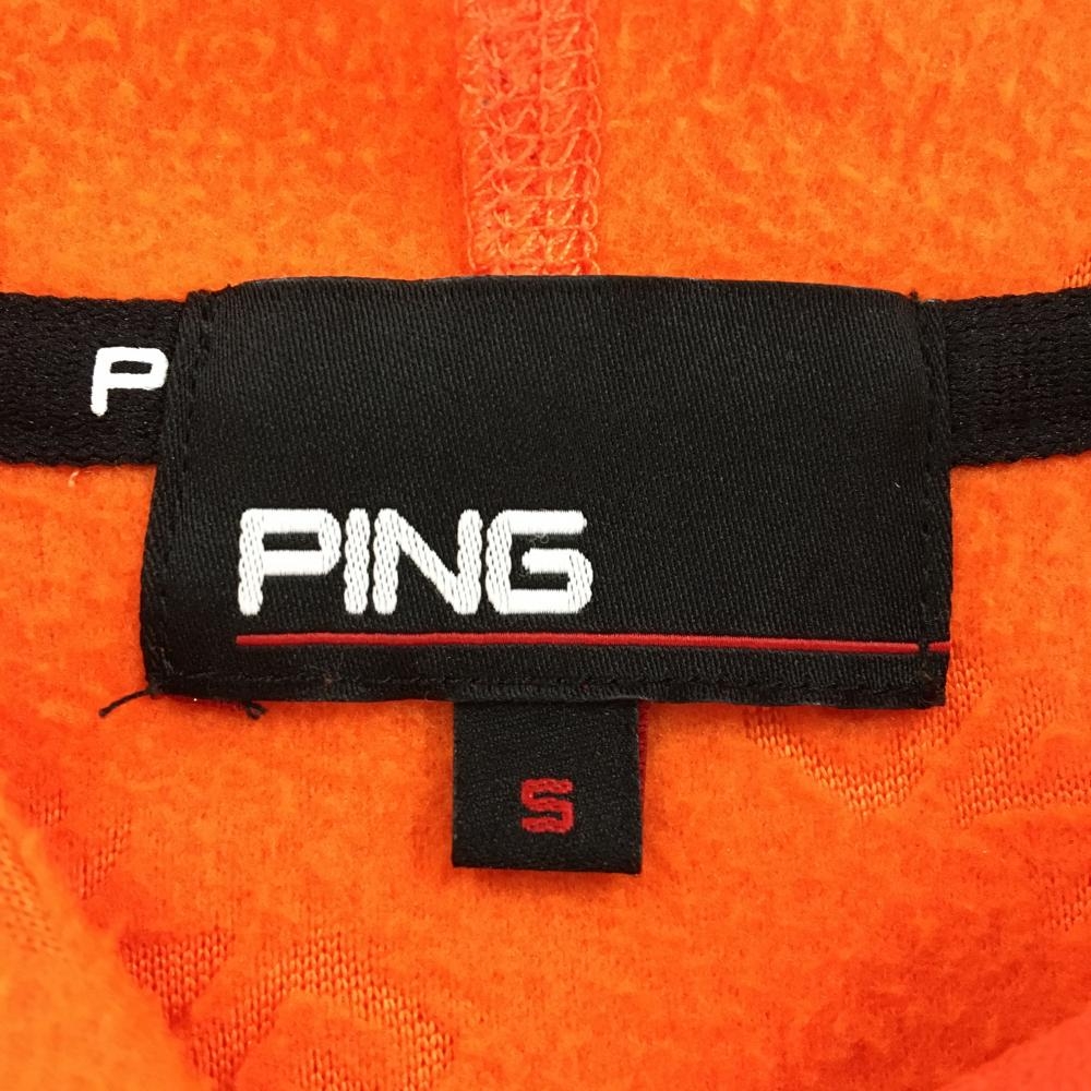 ピン パーカー オレンジ ロゴ総柄 フリース地 レディース S ゴルフウェア PING