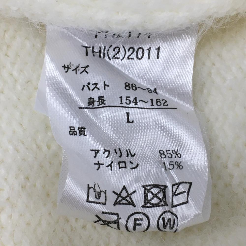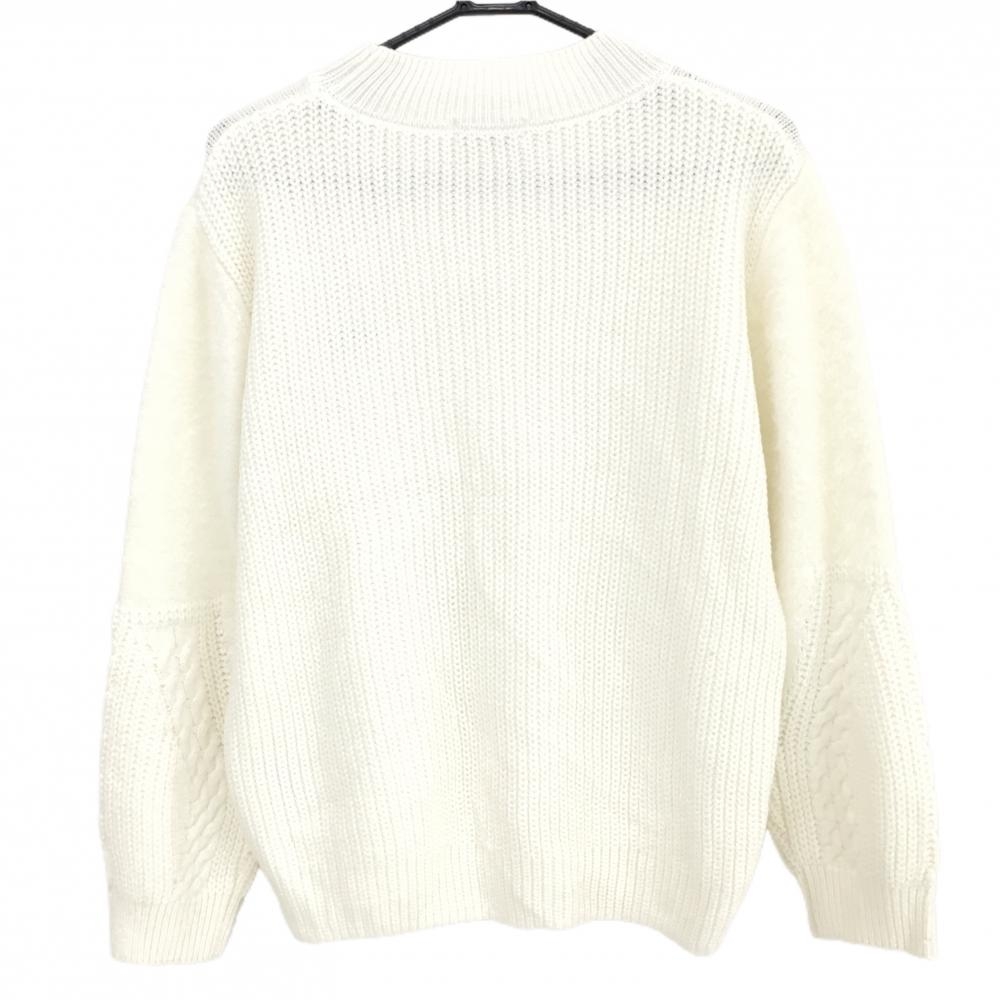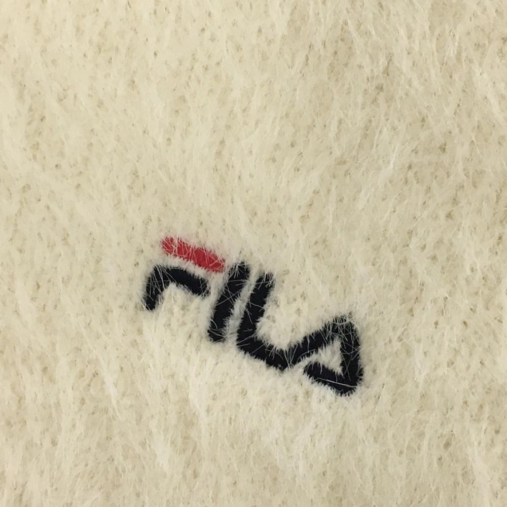 【超美品】フィラ ハイネックセーター 白 ロゴ刺しゅう 一部シャギー 袖ケーブル編み ニット レディース L ゴルフウェア FILA GOLF