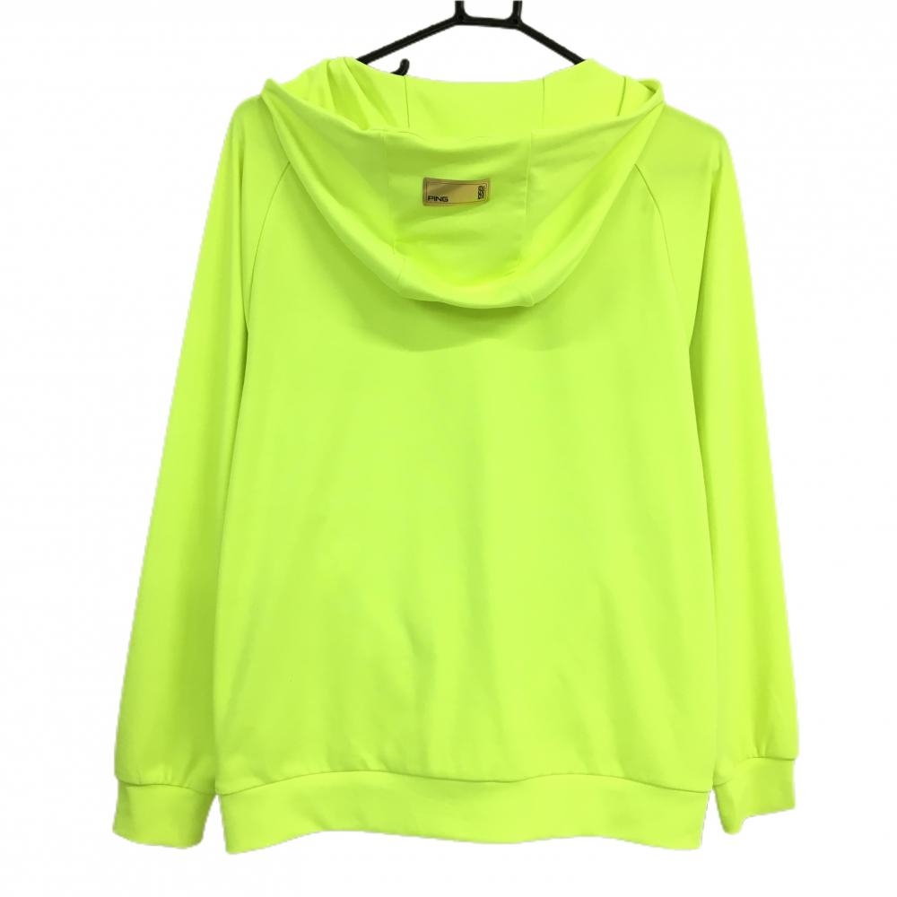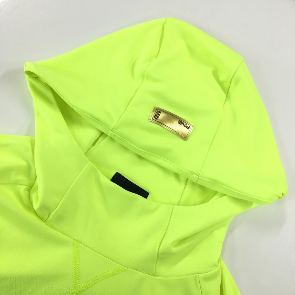 【美品】ピン パーカー 蛍光イエロー×黒 フロントロゴプリント 薄手 レディース S ゴルフウェア 2023年モデル PING