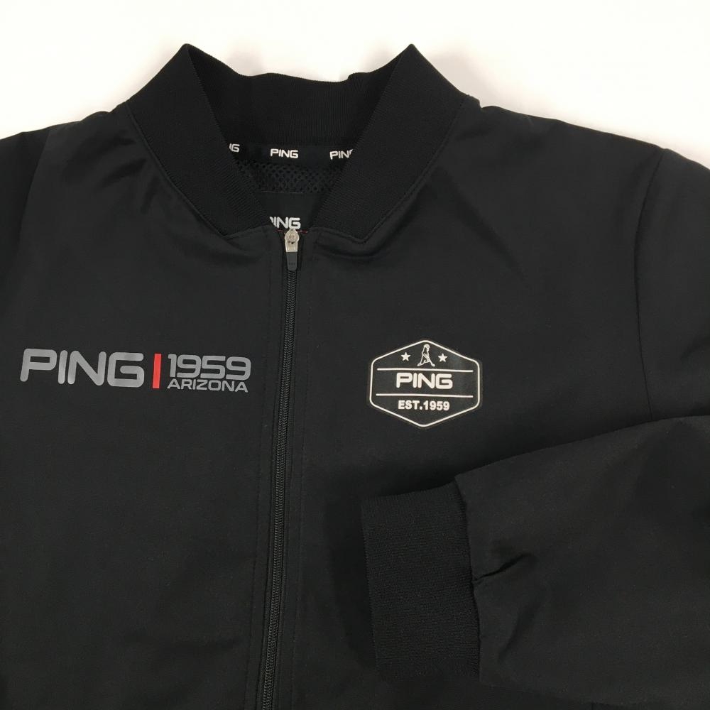 【超美品】ピン ジャケット 黒×グレー ロゴ ダブルジップ 裏地メッシュ レディース S ゴルフウェア PING