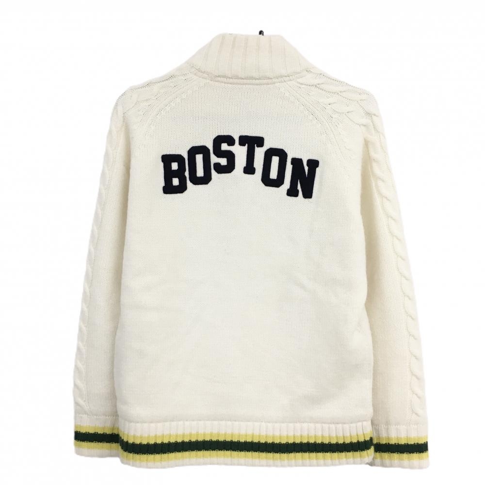 ニューバランスゴルフ ニットジャケット 白×イエロー×グリーン 一部ケーブル編み レディース 1(M) ゴルフウェア New Balance