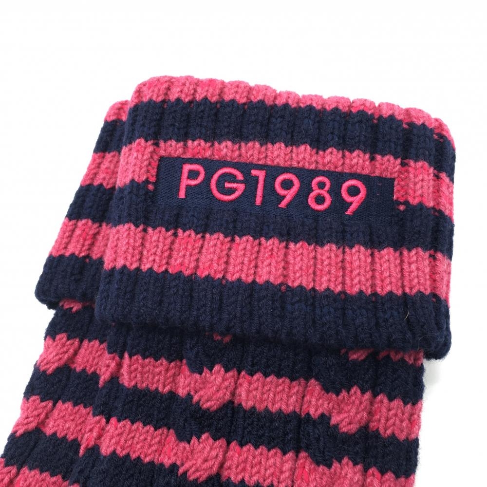 【新品】パーリーゲイツ ニットレッグウォーマー ピンク×ネイビー ボーダー ケーブル編み レディース FR ゴルフウェア PEARLY GATES
