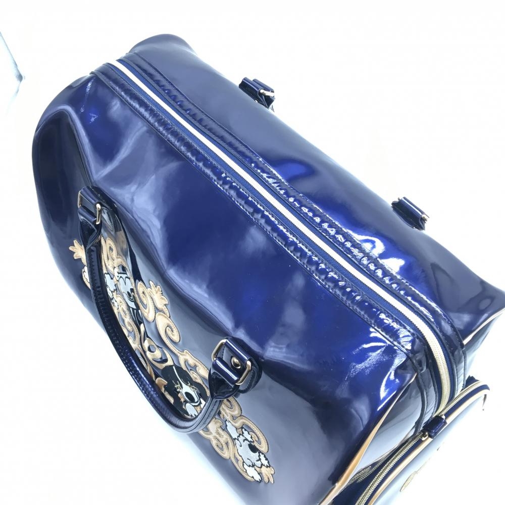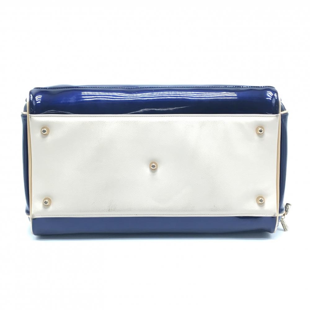 【美品】MUスポーツ ロッカーバッグ ネイビー×ベージュ シューズ収納 エナメル ドッグ ビッグボストンゴルフ M・U SPORTS