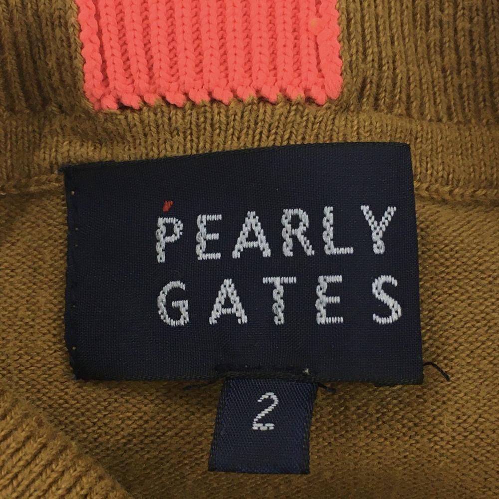 パーリーゲイツ タートルネックセーター ブラウン コットン混 ニット レディース 2(L) ゴルフウェア PEARLY GATES