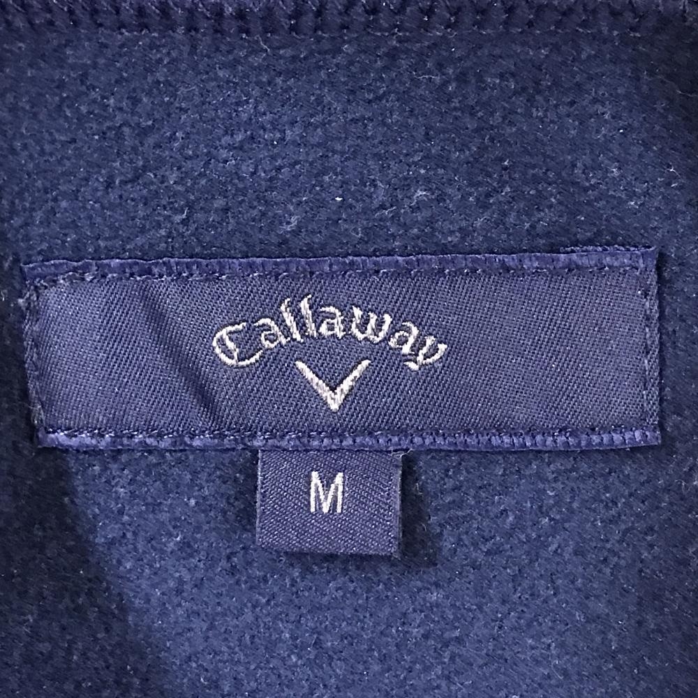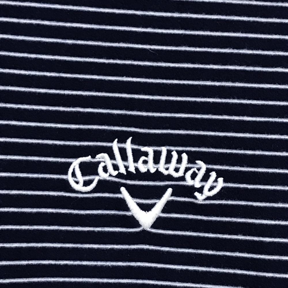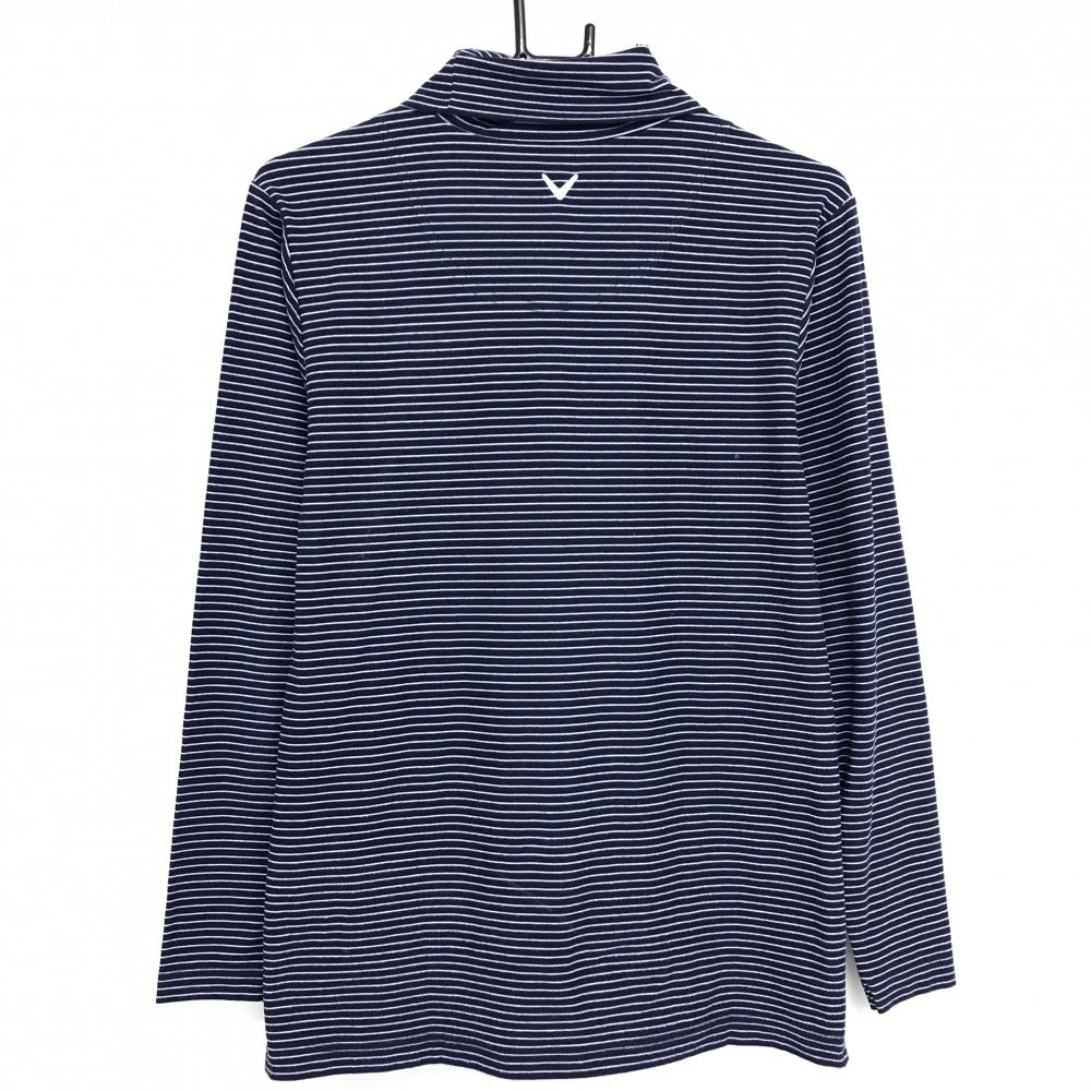 【美品】キャロウェイ 長袖タートルネックシャツ ネイビー×白 ボーダー 微起毛 メンズ M ゴルフウェア Callaway