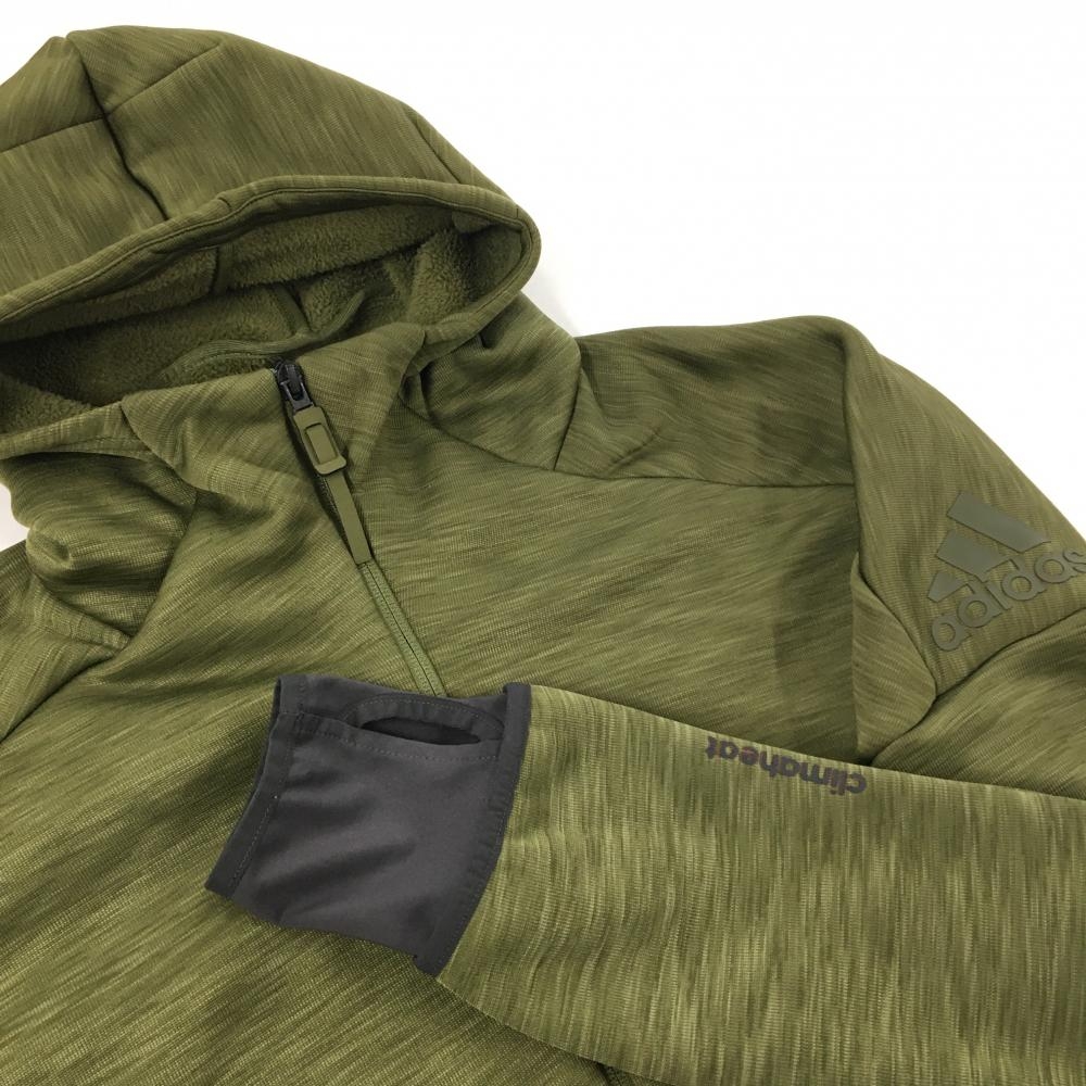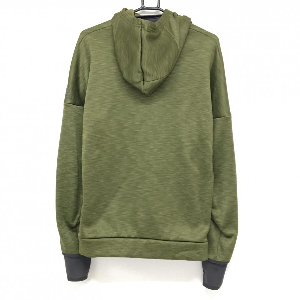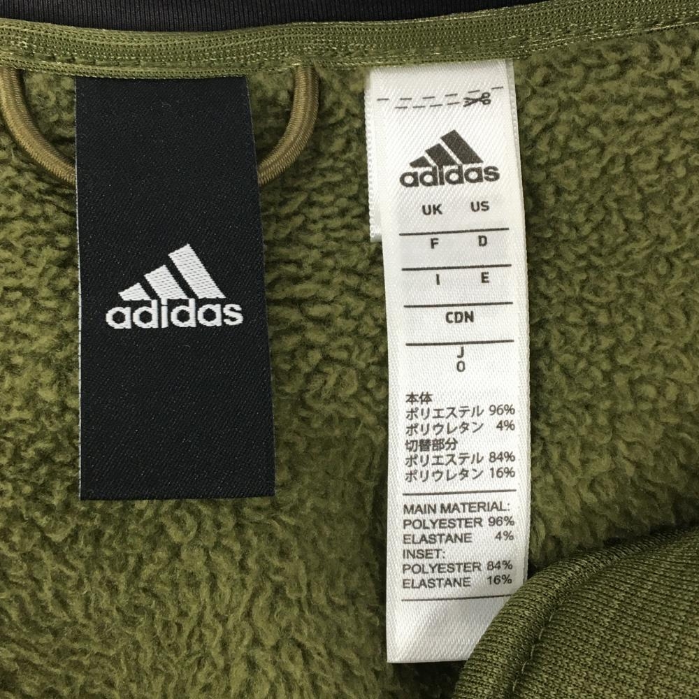 【美品】アディダス ジップパーカー 杢カーキ 裏ボア 袖ロゴ ジャケット メンズ O(XL) ゴルフウェア adidas