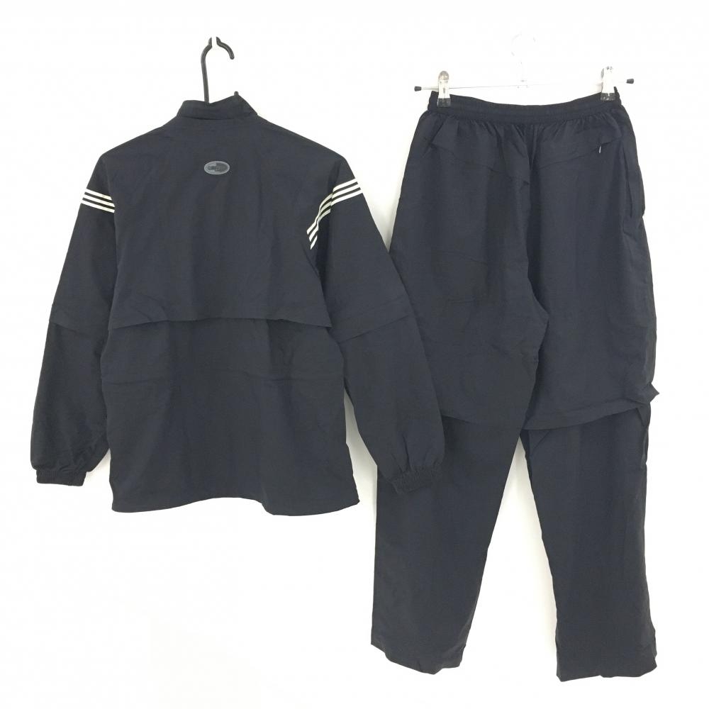 アディダス レインウェア(2WAYジャケット×パンツ) 黒×白 袖着脱可 3ライン 収納袋 レディース S/P ゴルフウェア adidas