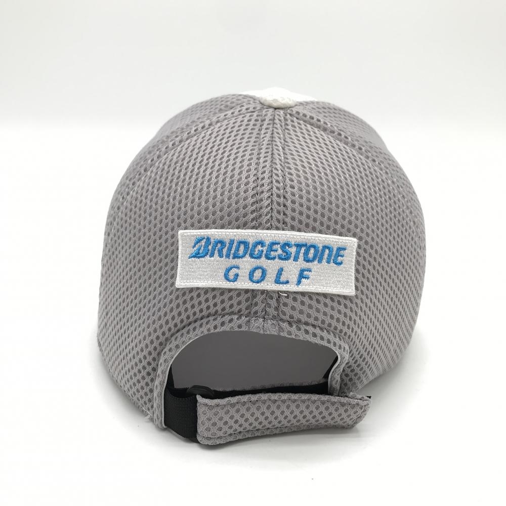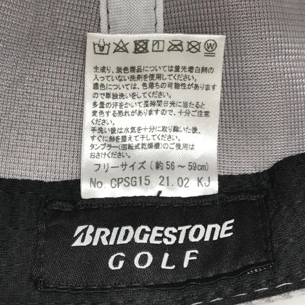 【美品】ブリヂストンゴルフ キャップ 白×グレー ロゴ刺しゅう メッシュ風 フリーサイズ(約56~59cm) ゴルフウェア Bridgestone