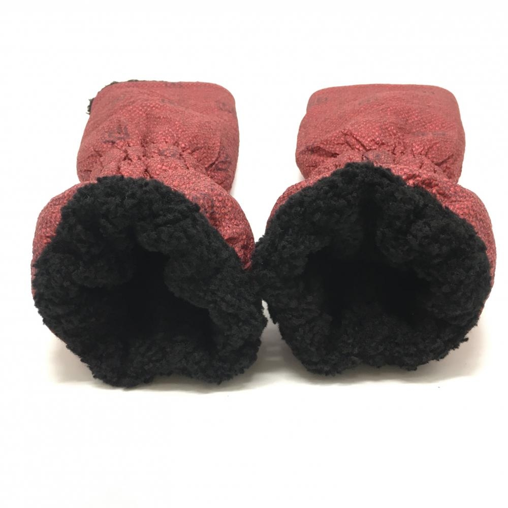 【超美品】ダンスウィズドラゴン リバーシブルレッグウォーマー 黒 ボア 裏レッド 総柄 レディース ゴルフウェア Dance With Dragon