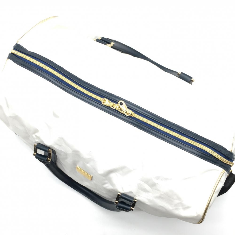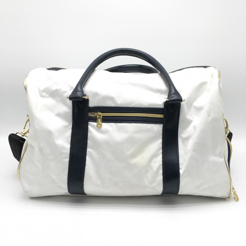 マークアンドロナ 2WAYボストンバッグ 白×ダークネイビー カモフラ地模様 シューズ収納可 ゴルフ MARK&LONA