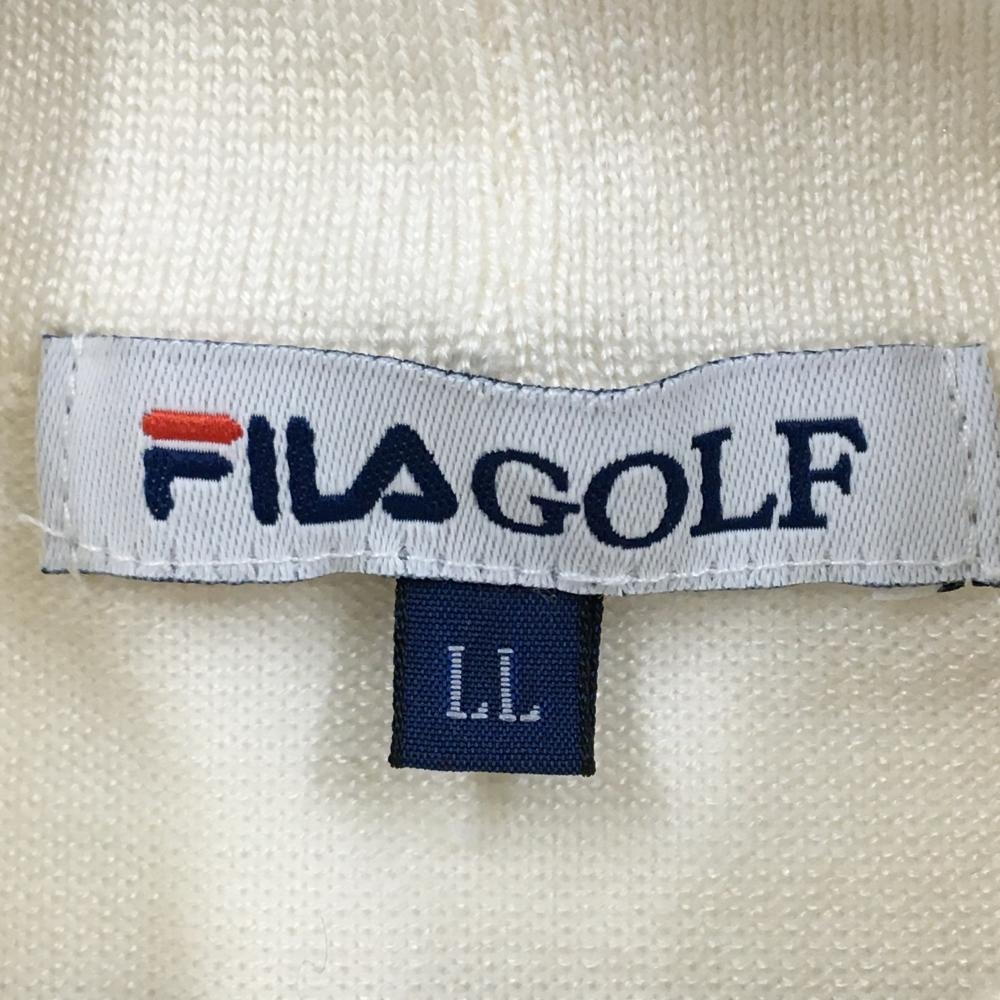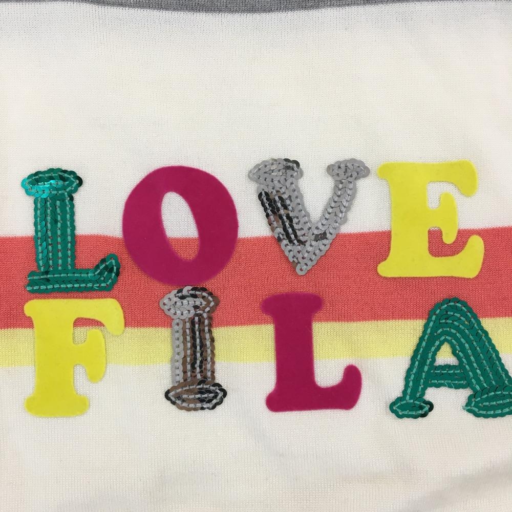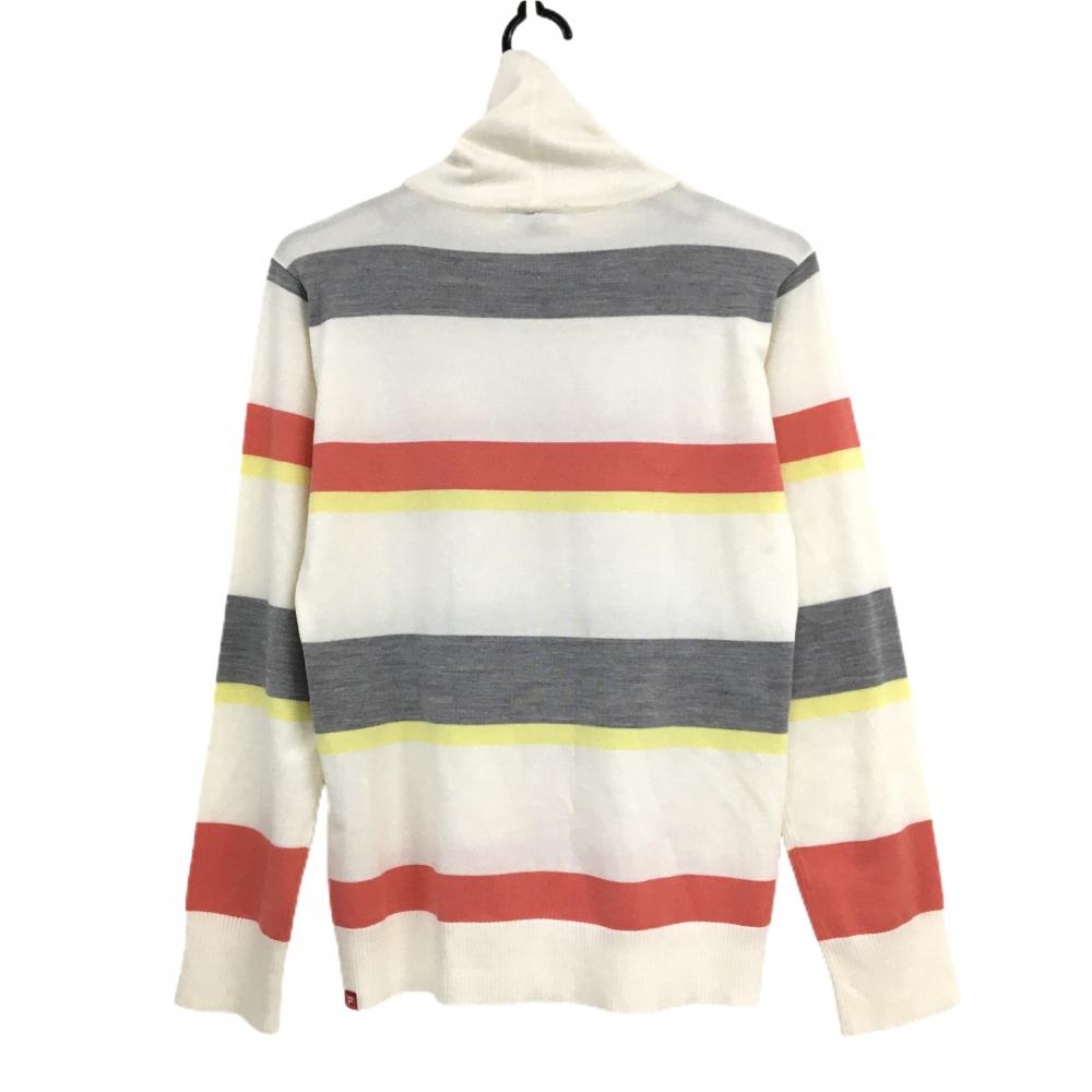 【超美品】フィラゴルフ タートルネックセーター 白×オレンジ ボーダー スパンコール ウール混 レディース LL ゴルフウェア FILA GOLF