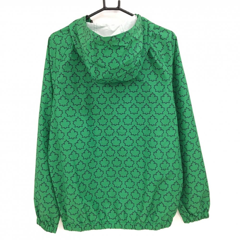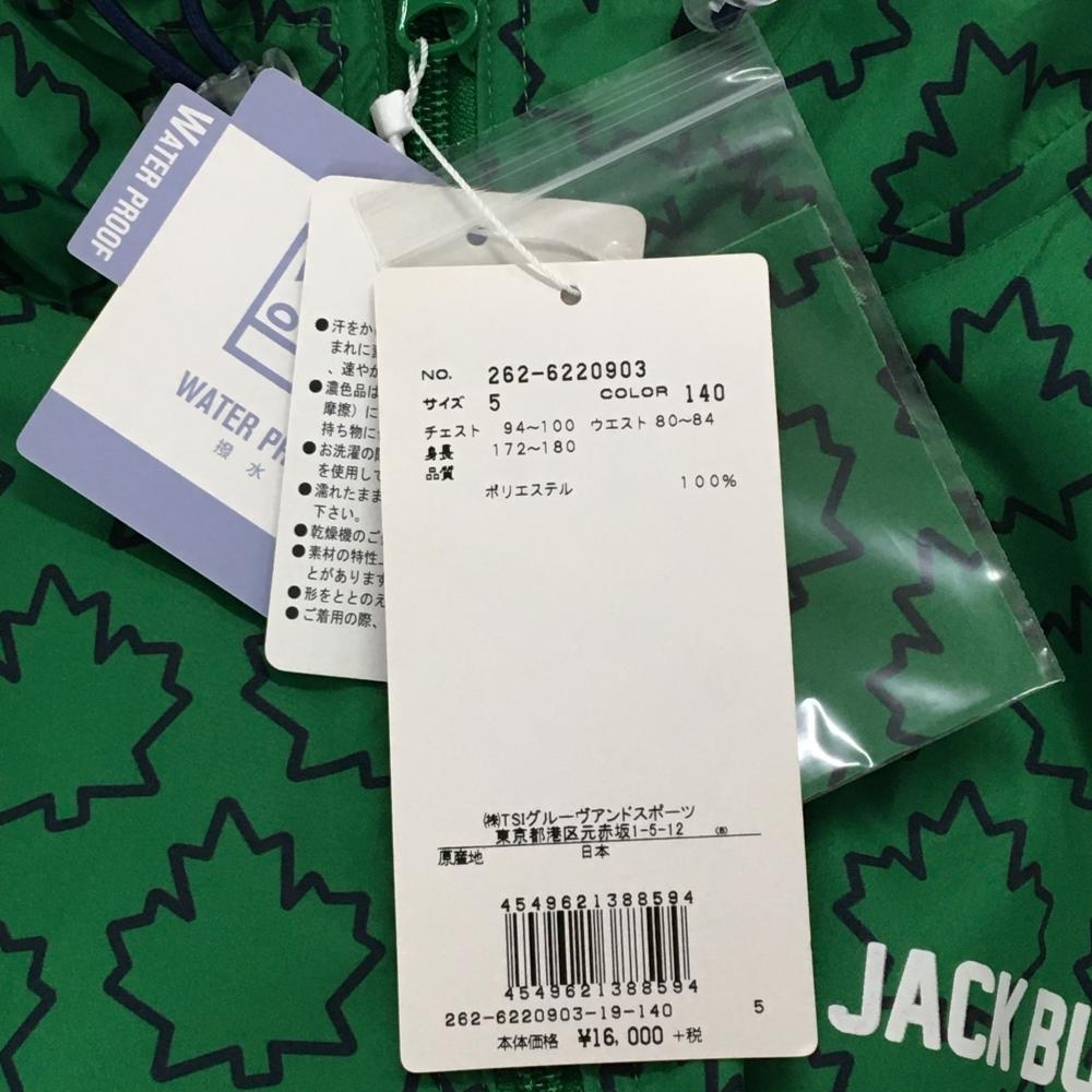 【新品】ジャックバニー ジップパーカー グリーン×ネイビー メイプルリーフ柄 ブルゾン 撥水 メンズ 5(L) ゴルフウェア Jack Bunny