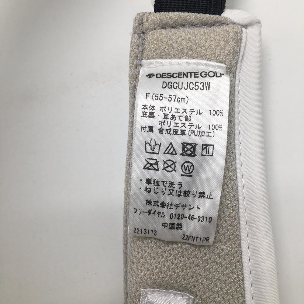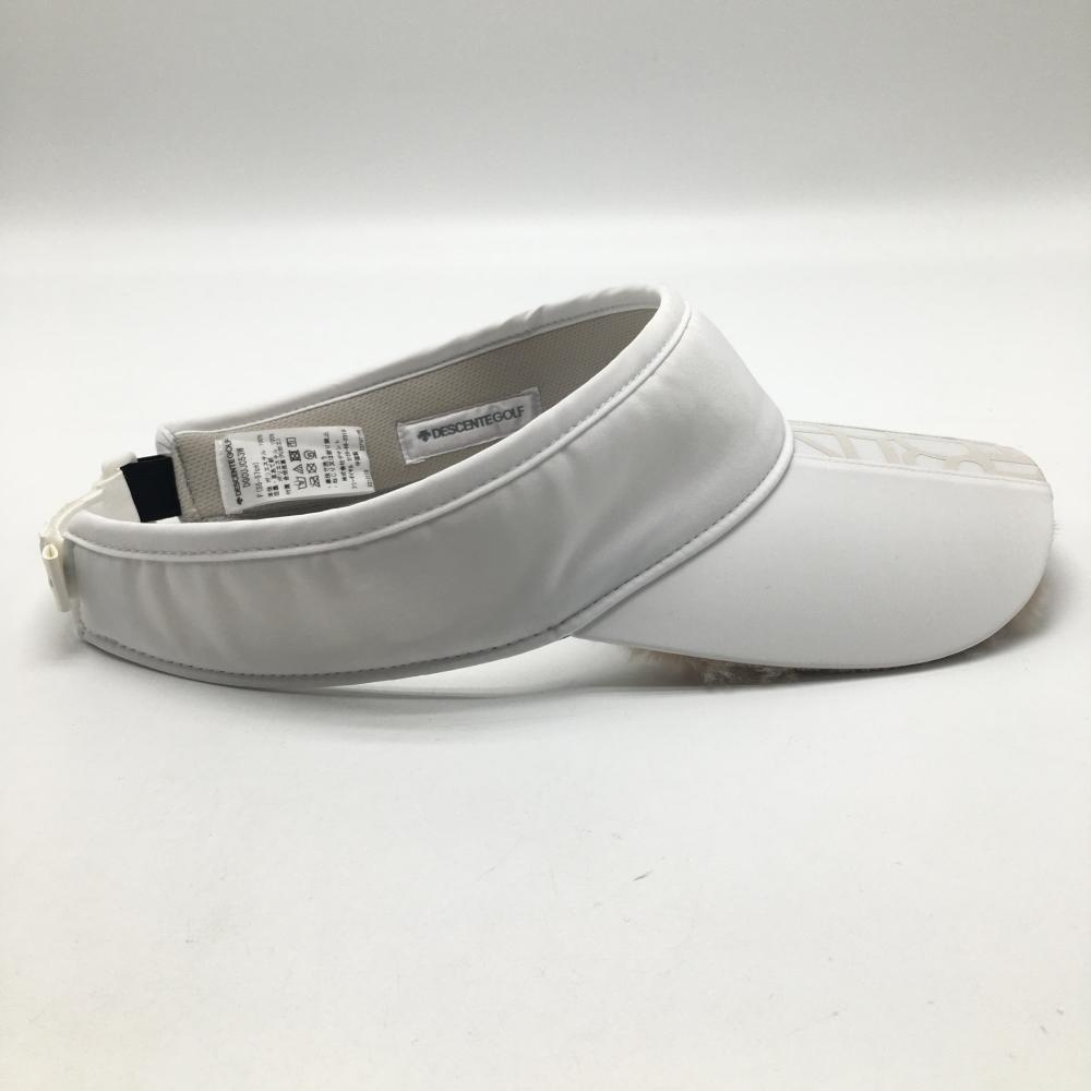 【美品】デサントゴルフ サンバイザー 白×ベージュ つば裏ボア 中田英寿 F(55-57cm) ゴルフウェア DESCENTE