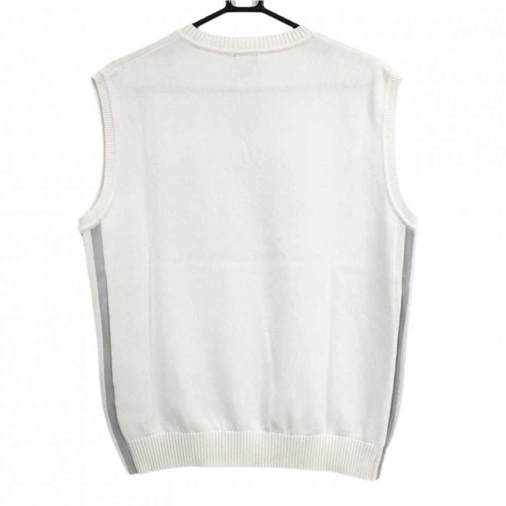 【美品】アディダス ベスト 白×グレー Vネック サイド3ライン 刺しゅう メンズ O/XG ゴルフウェア adidas